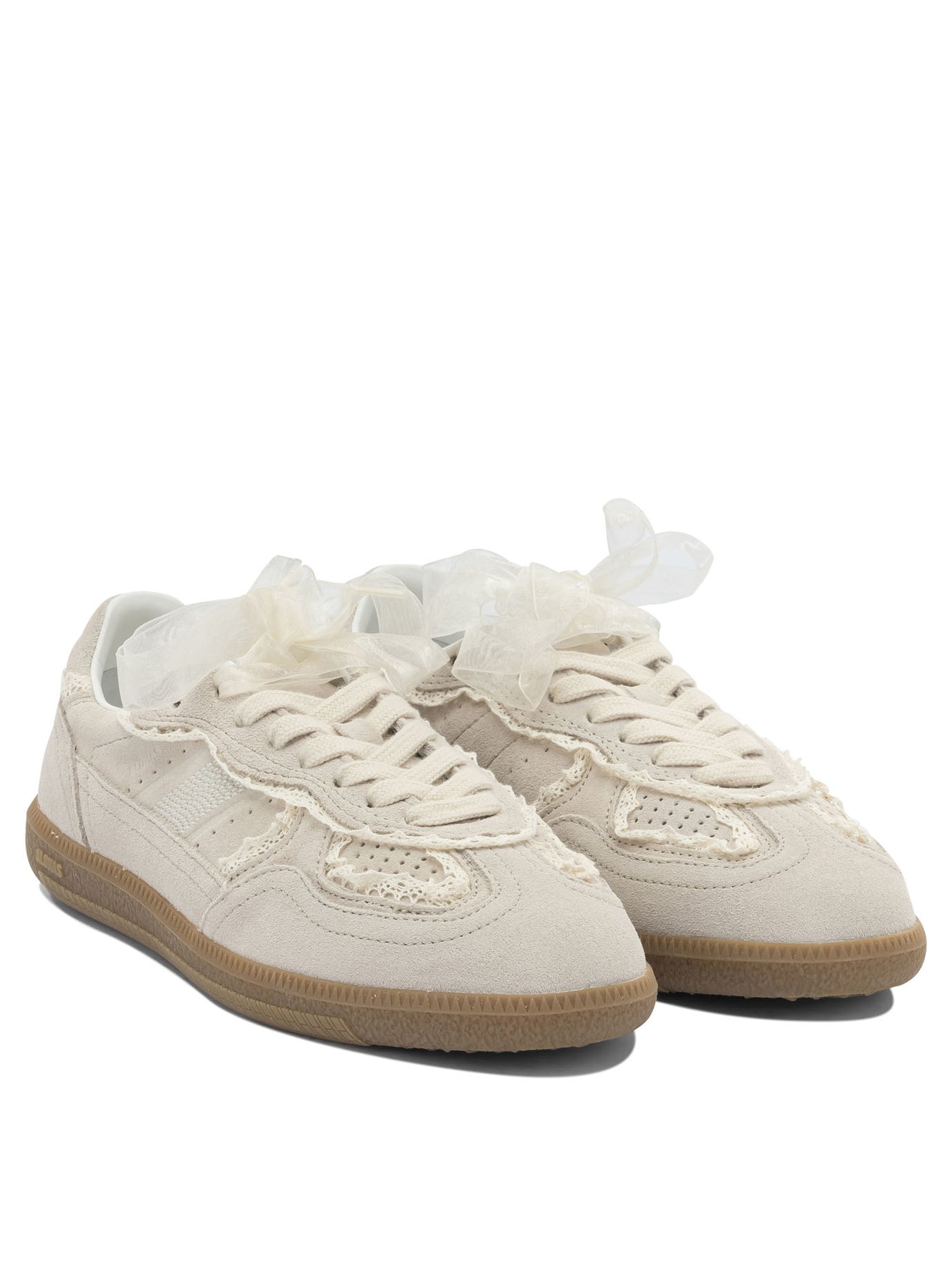 Alohas "TB 490" sneakers features a suede construction with crochet trim applied along the upper. The silhouette is low, and the construction includes a flat rubber sole attached via exposed stitching, details that continue along the sides. The embossed logo appears on the tongue and sides. Traditional lace-up closure and bow option, both of which come with the model. || - Suede leather upper and crocheted details - Smooth rubber sole with exposed contouring - Logo embossed on tongue and sides - Laces or bow closure option included - Internal label with brand ID