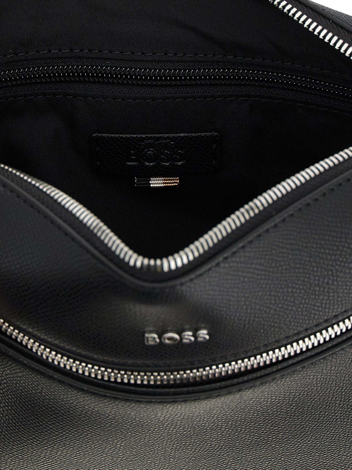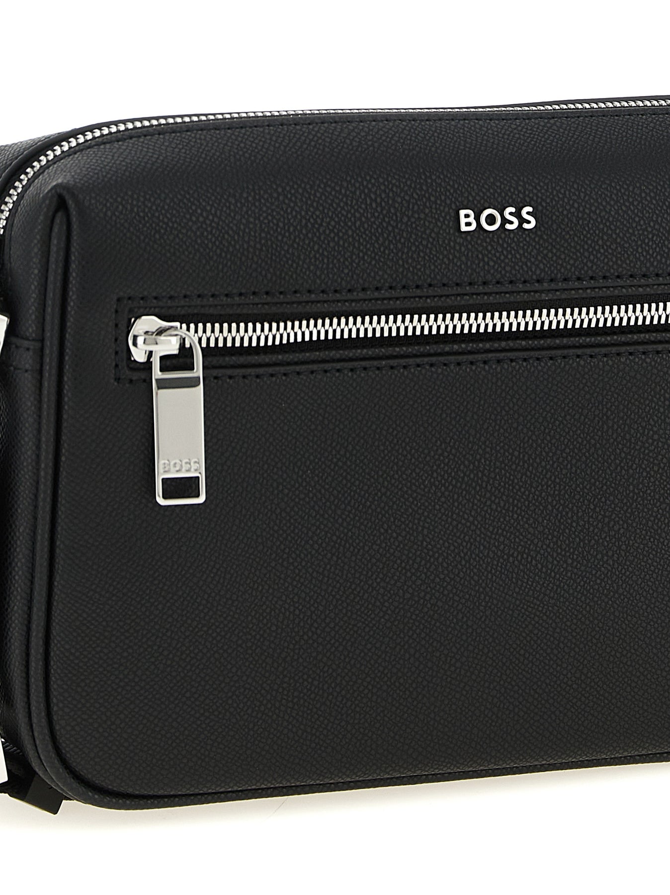 'Daxter_EW' hammered leather crossbody bag, metal lettering logo and front zip pocket, top zip closure, back pocket, adjustable tape shoulder strap. SUSTAINABLE: This product is made of regenerated leather.