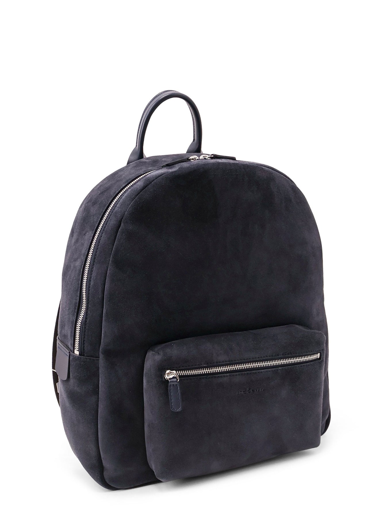 Leather handle Zip closure with double slider Adjustable shoulder straps One front zip pocket Made in Italy Suede W: 39 cm, H: 44 cm, D: 15 cm SKU:UBA0149N0142001BLUE