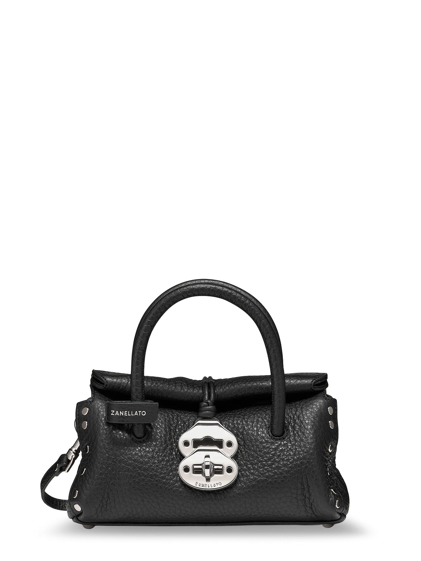 Double leather handle Magnetic roll-top closure Metal twist lock closure Removable and adjustable shoulder strap Internal lining Made in Italy Leather W: 23 cm, H: 11 cm, D: 12 cm SKU: 0687501120000BABYZ0001