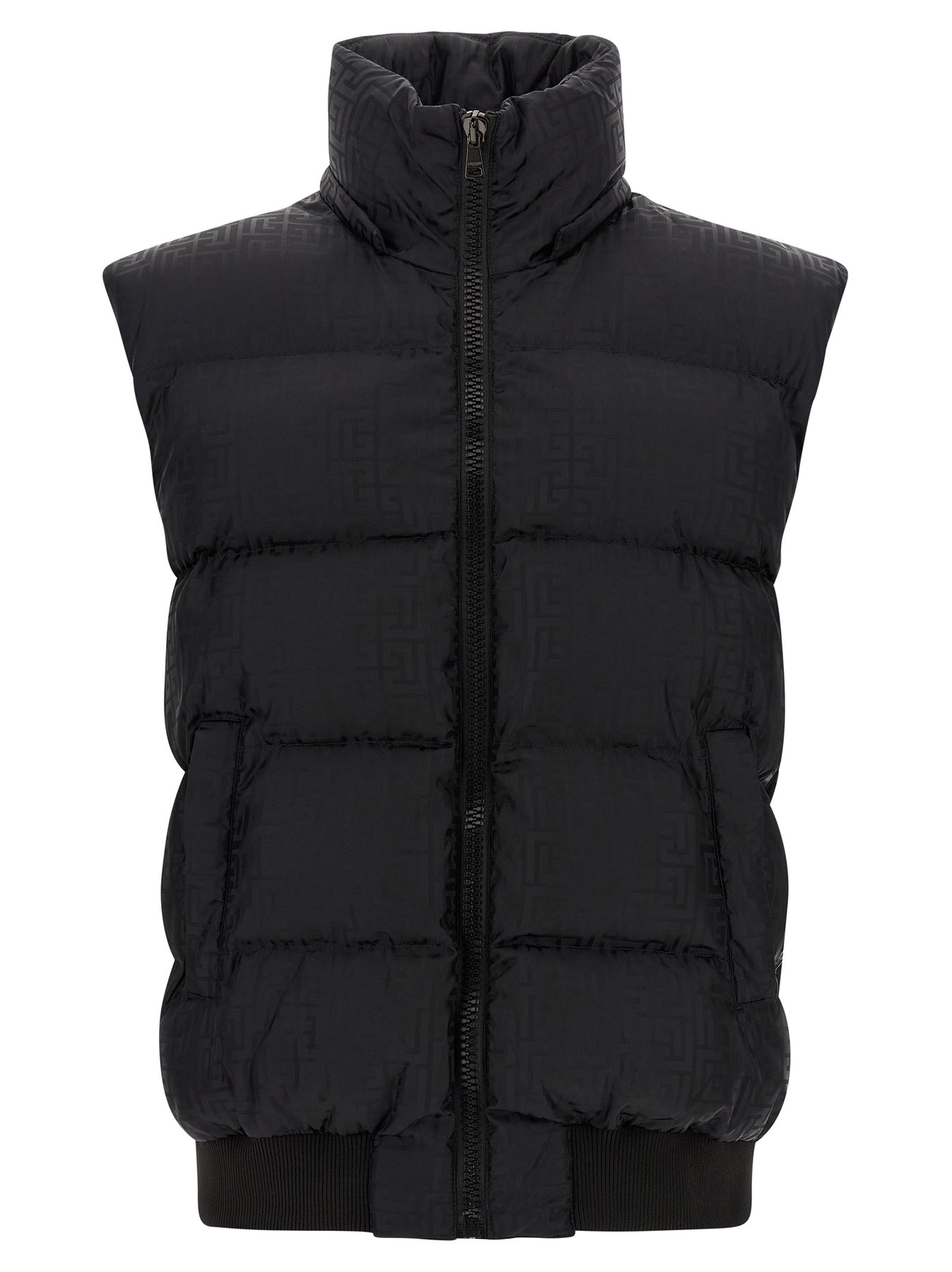 Short down jacket in all-over quilted and padded tone-on-tone jacquard Monogram PB Labirinto fabric, stretch ribbed knit details, removable hood, standing collar, front zip closure, pockets, long sleeves with removable cuffs.
