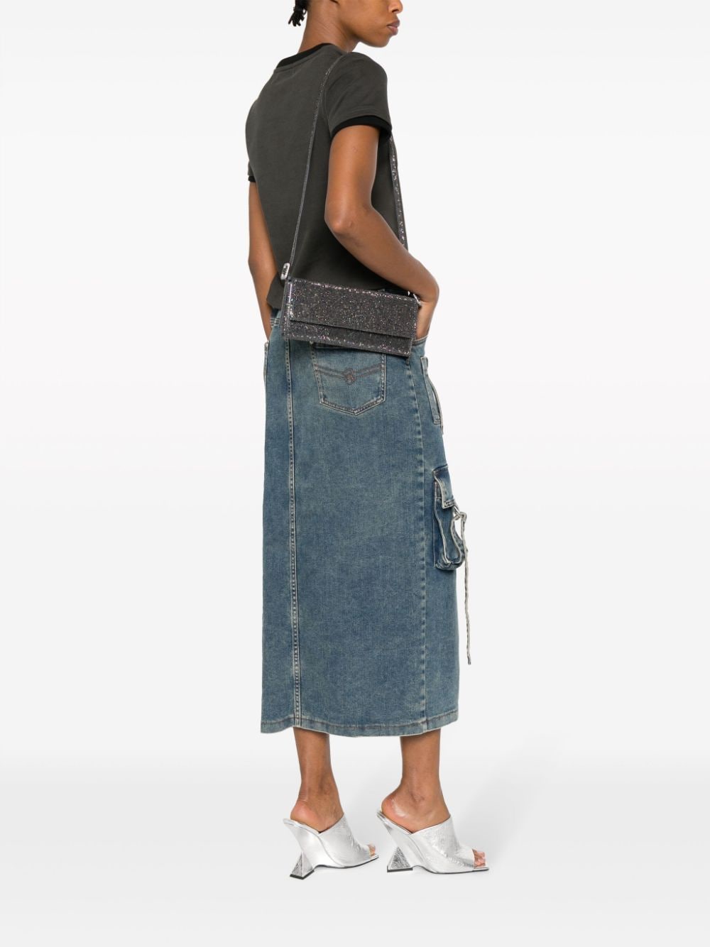 small Vittissima Spectre crystal bag from BENEDETTA BRUZZICHES featuring black, aluminium, rhinestone embellishment, foldover top with magnetic fastening, silver-tone buckle fastening, single shoulder strap, main compartment, internal logo stamp, internal zip-fastening pocket, internal mirror and silk lining.