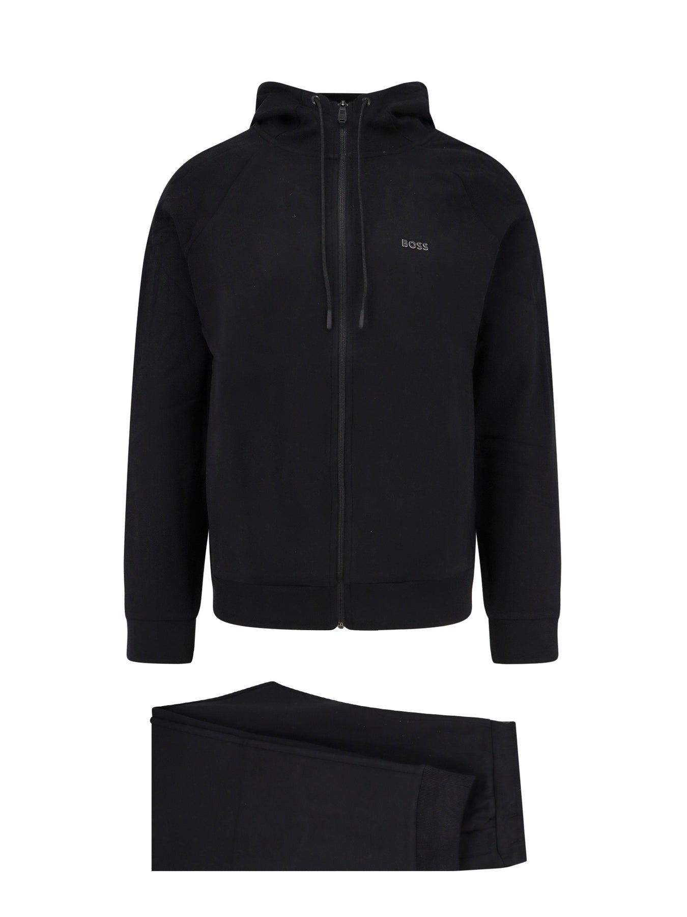 Sweatshirt: zip closure and side welt pockets Lined hood and adjustable drawstring Trousers: elastic waistband with adjustable drawstring Side welt pockets 95% cotton 5% elastane SKU: 50519395_001