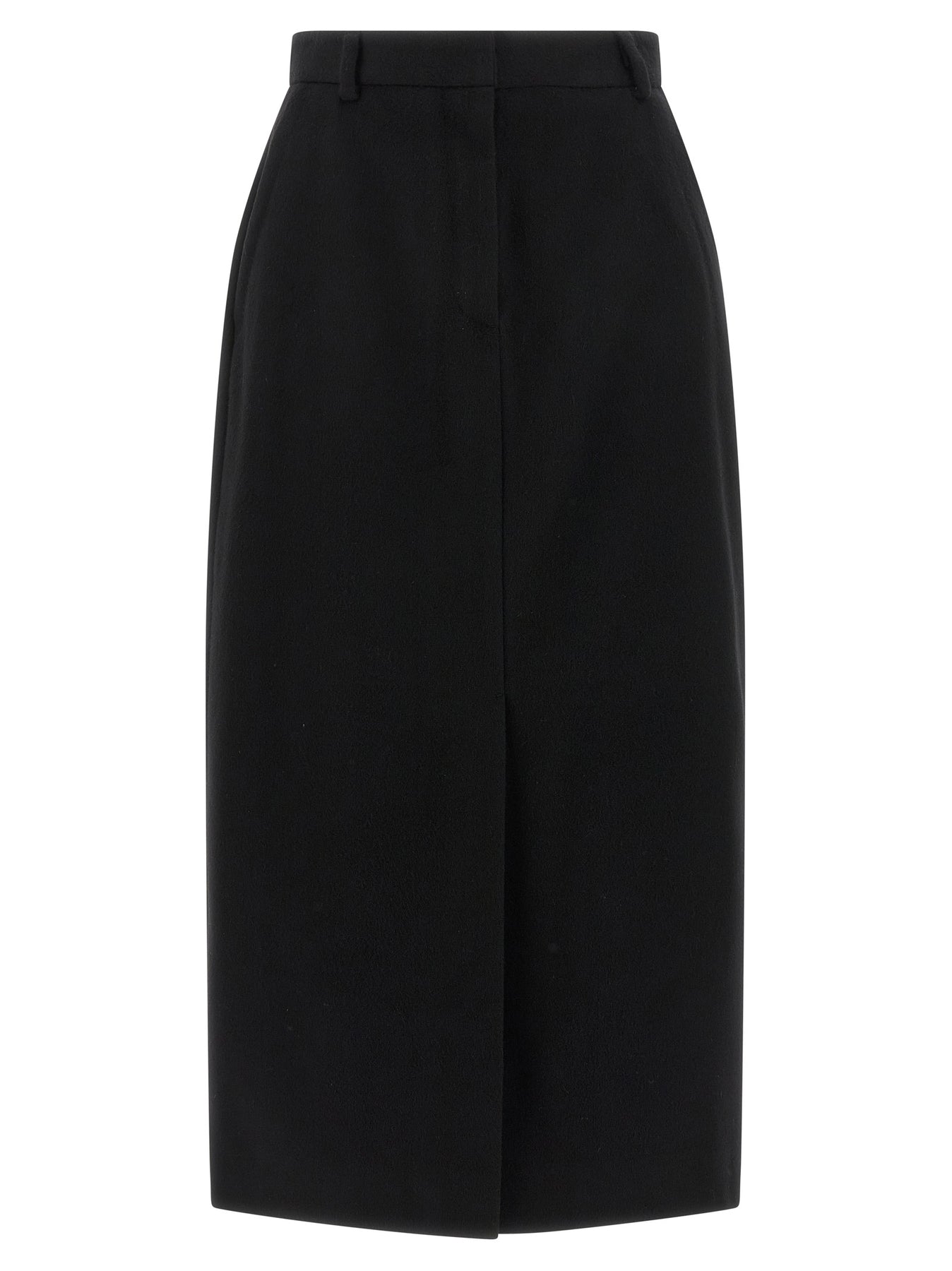 'Violante' midi skirt in cashmere, sheath skirt with front split, hook and button zip closure, pockets, lining.