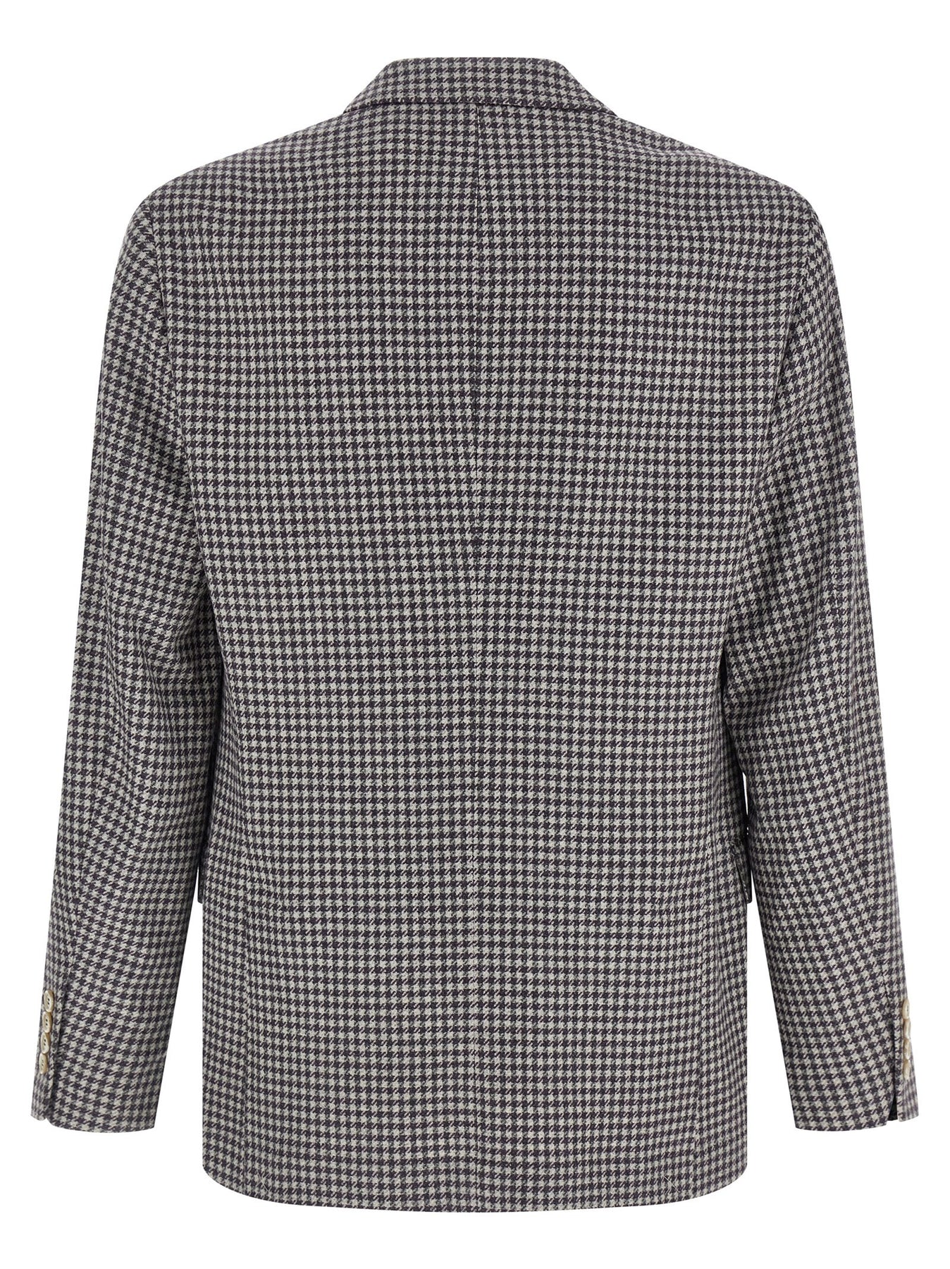 Houndstooth wool, cashmere and silk blazer jacket, deconstructed single-breasted model with three-button closure in two-ironed horn, mirror lapels, flap pockets, ticket pocket and chest pocket, two inside pockets with button closure and pen pocket, 'Spalla Solomeo', cuffs with opening buttonholes, half cupro lining, back vents.