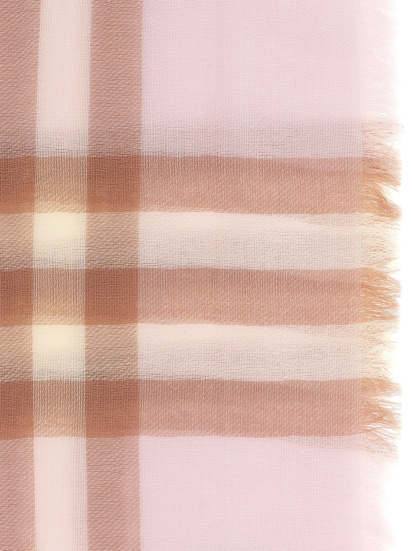 Light wool 'Giant' scarf woven with Burberry Check, fringed edges.