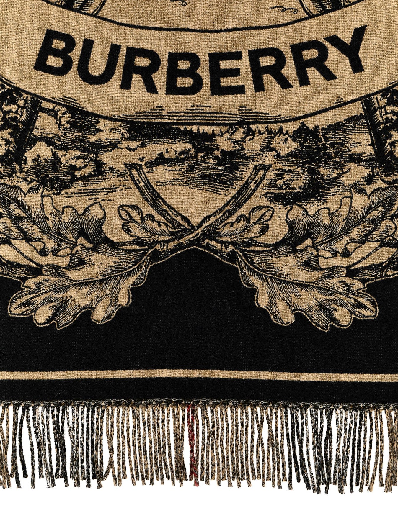 Reversible cashmere scarf with jacquard processing, one side Equestrian Knight Design print and one Burberry Check print, fringes.