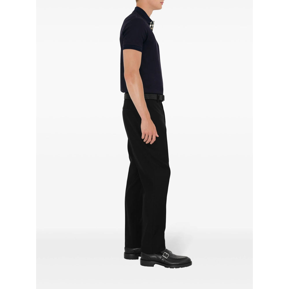 navy blue cotton piqué weave front button placket polo collar embroidered logo at the chest signature Equestrian Knight motif short sleeves straight hem slim cut