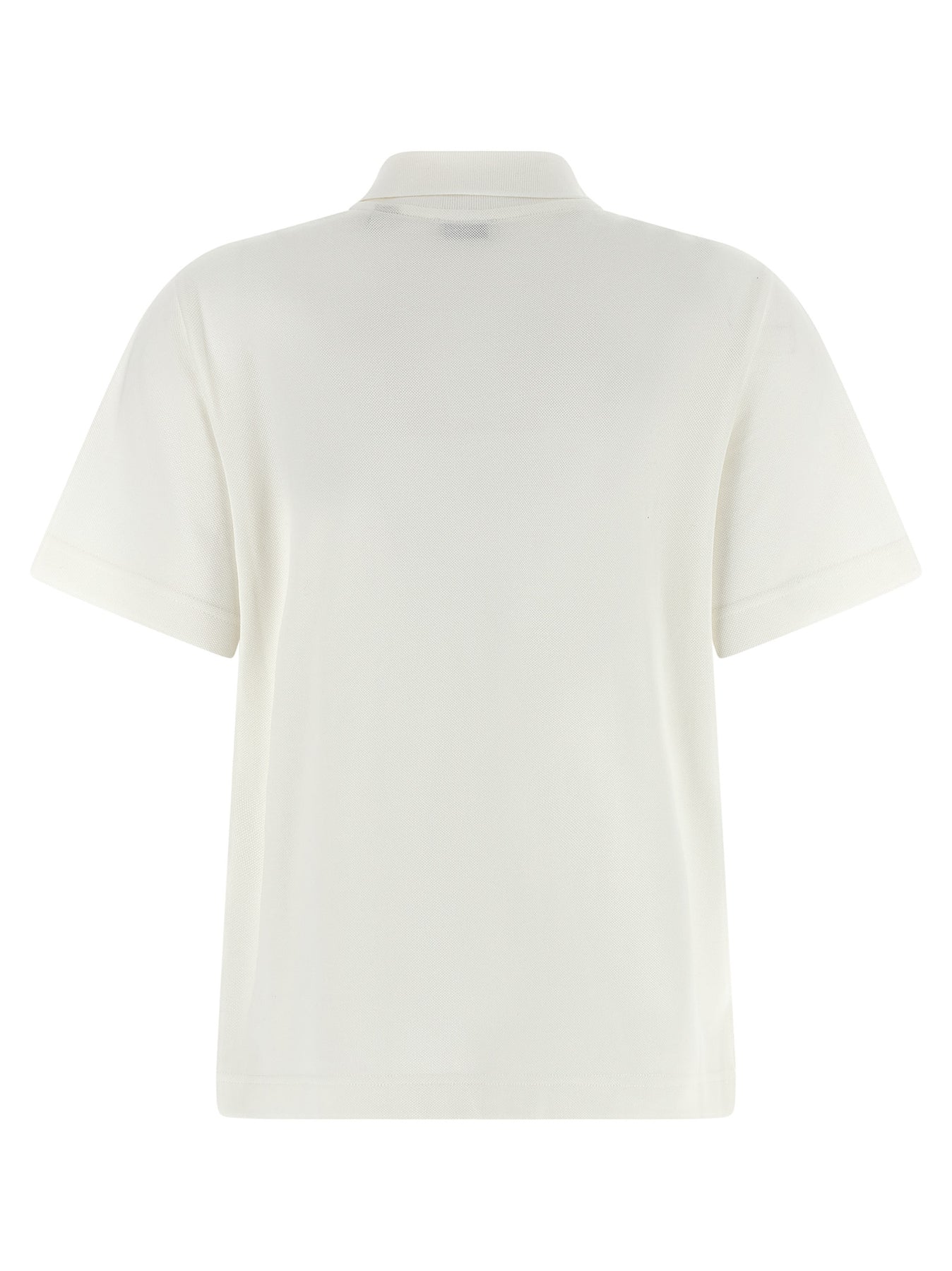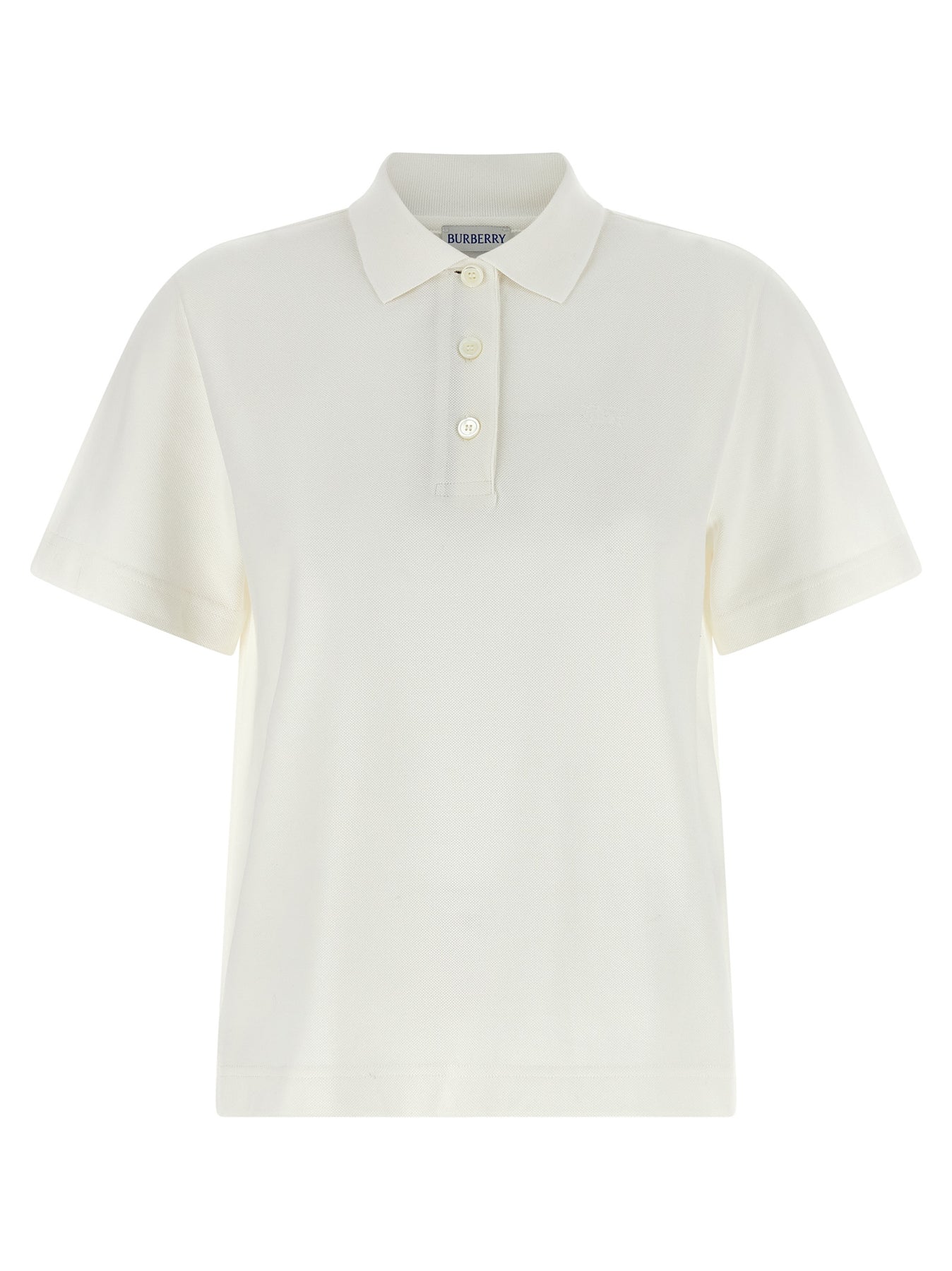 'Priscilla' cotton piqué polo shirt, tone-on-tone 'Equestrian Knight Design' embroidery on the front, collar and buttons with knitted Burberry Check placket, short sleeves, side slits.