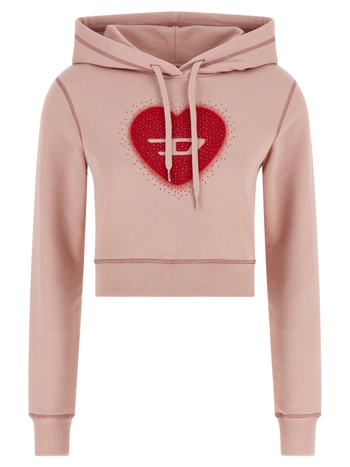 'F-Slimmy-Hood-S5' hoodie in fleece cotton with digital print with Oval D logo and rhinestones on the front, long sleeves with cuffs and dropped shoulders, and band on the hem.