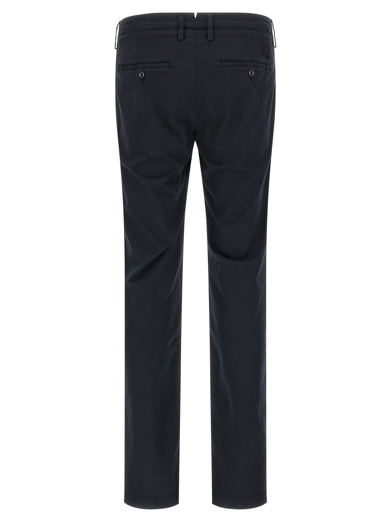 'Bobby' cotton blend chinos, low waist, straight leg, pockets, front zip and button closure, back logo patch.