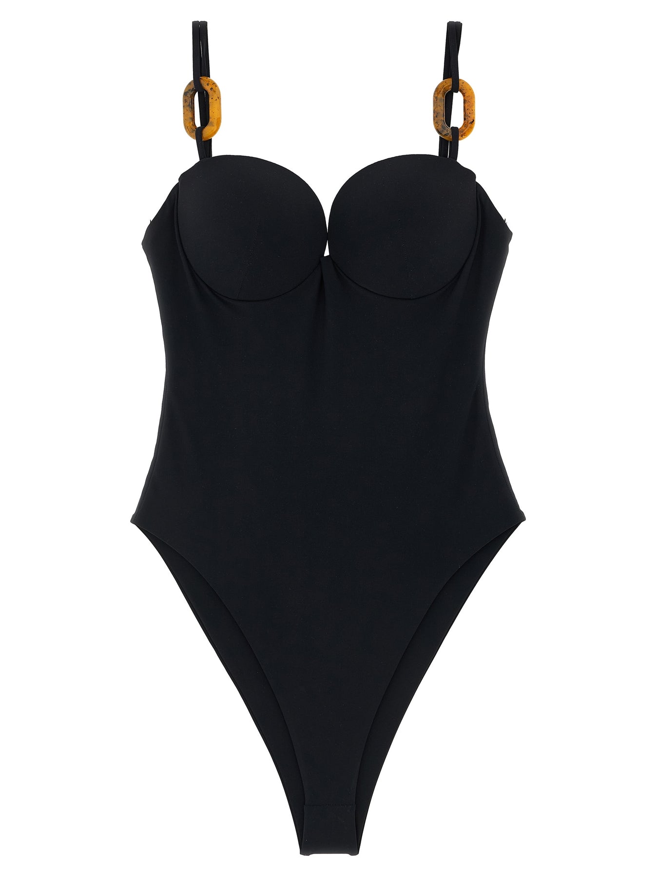 'RE26' one-piece swimsuit with padded cups, thin straps and jewelry detail.
