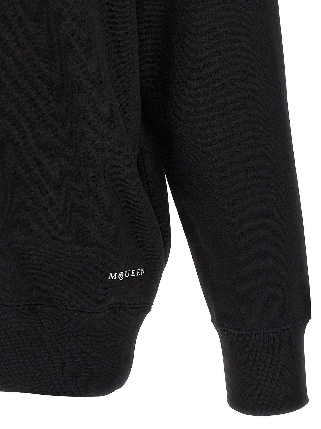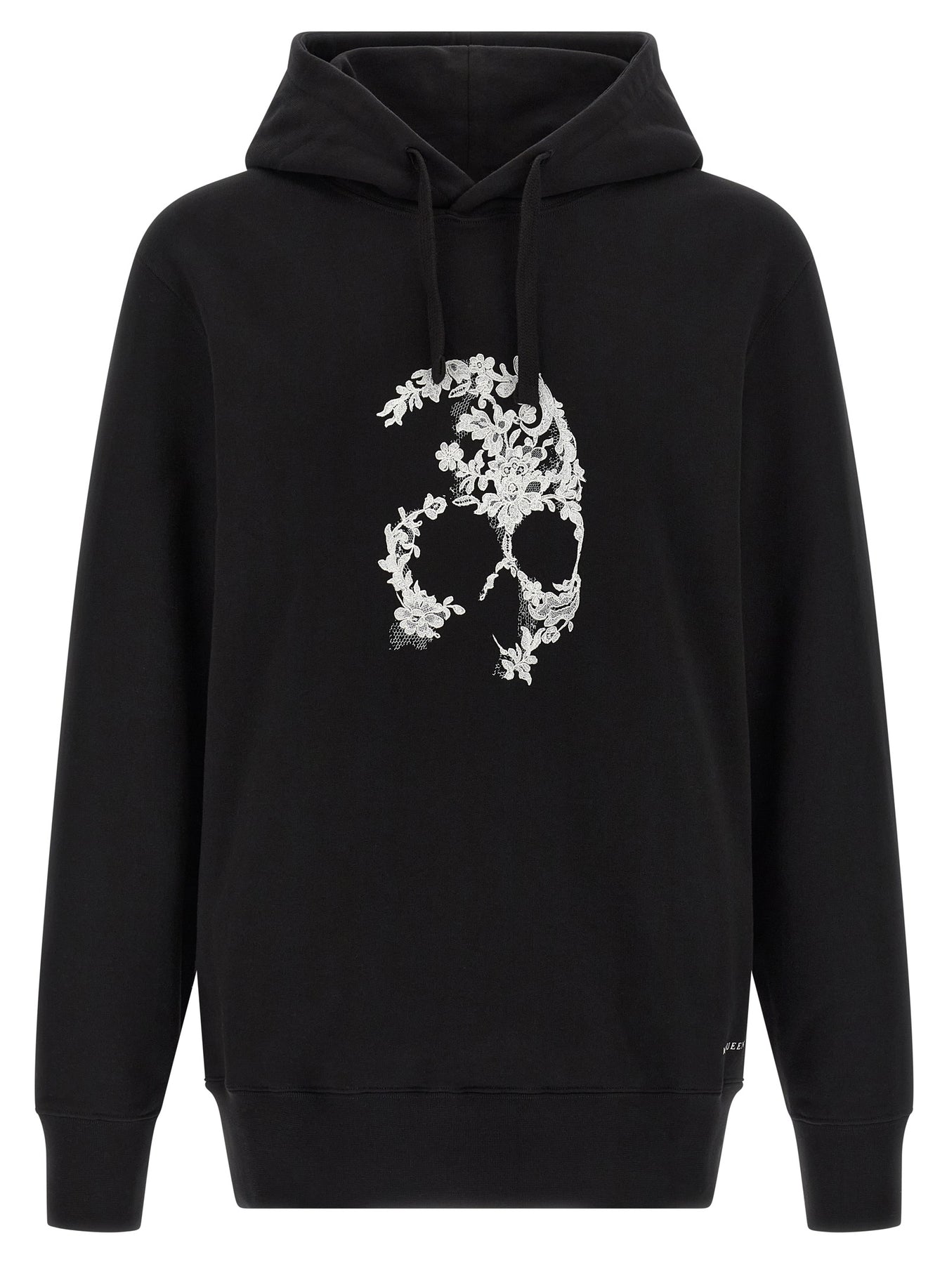 Brushed cotton hoodie with digital lace 'Skull' print and front logo, long cuffed sleeves and dropped shoulders.
