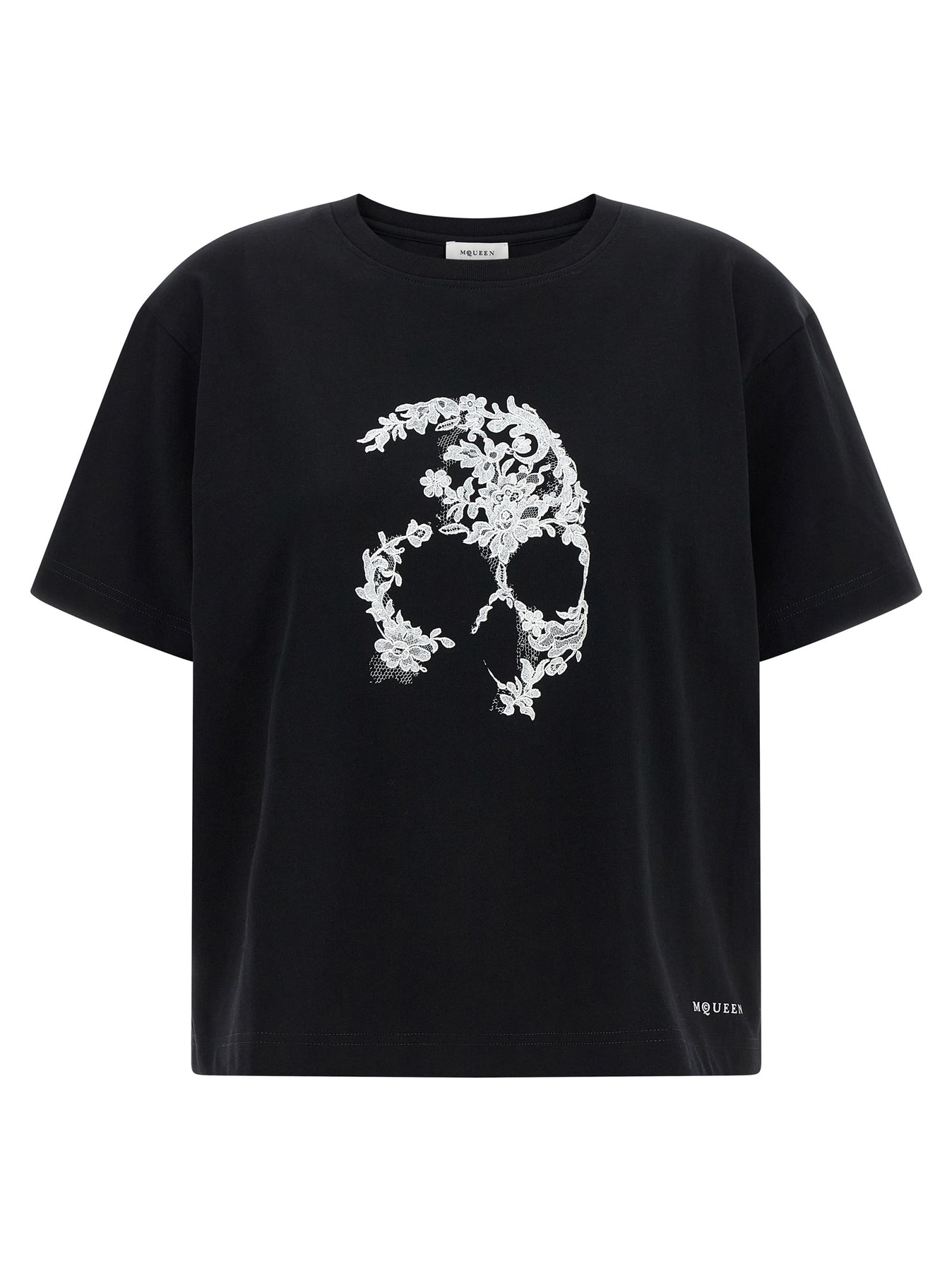 Cotton jersey T-shirt with digital lace 'Skull' print and front logo, crew neck, short sleeves.