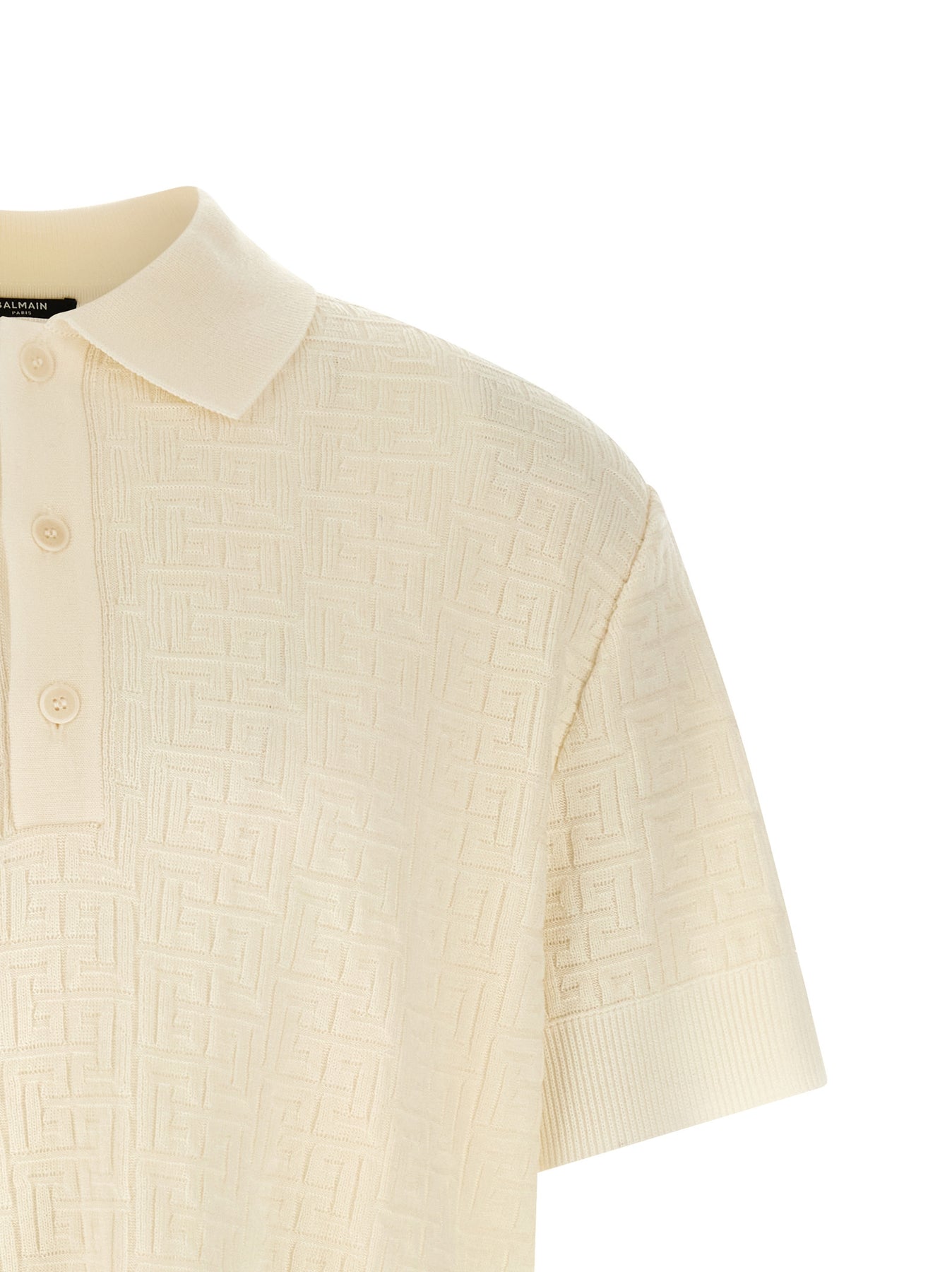 Balmain Monogram Jacquard  Shirt Polo - White | d3bcf4a5670f27c847cedc37918099ab26e851d2