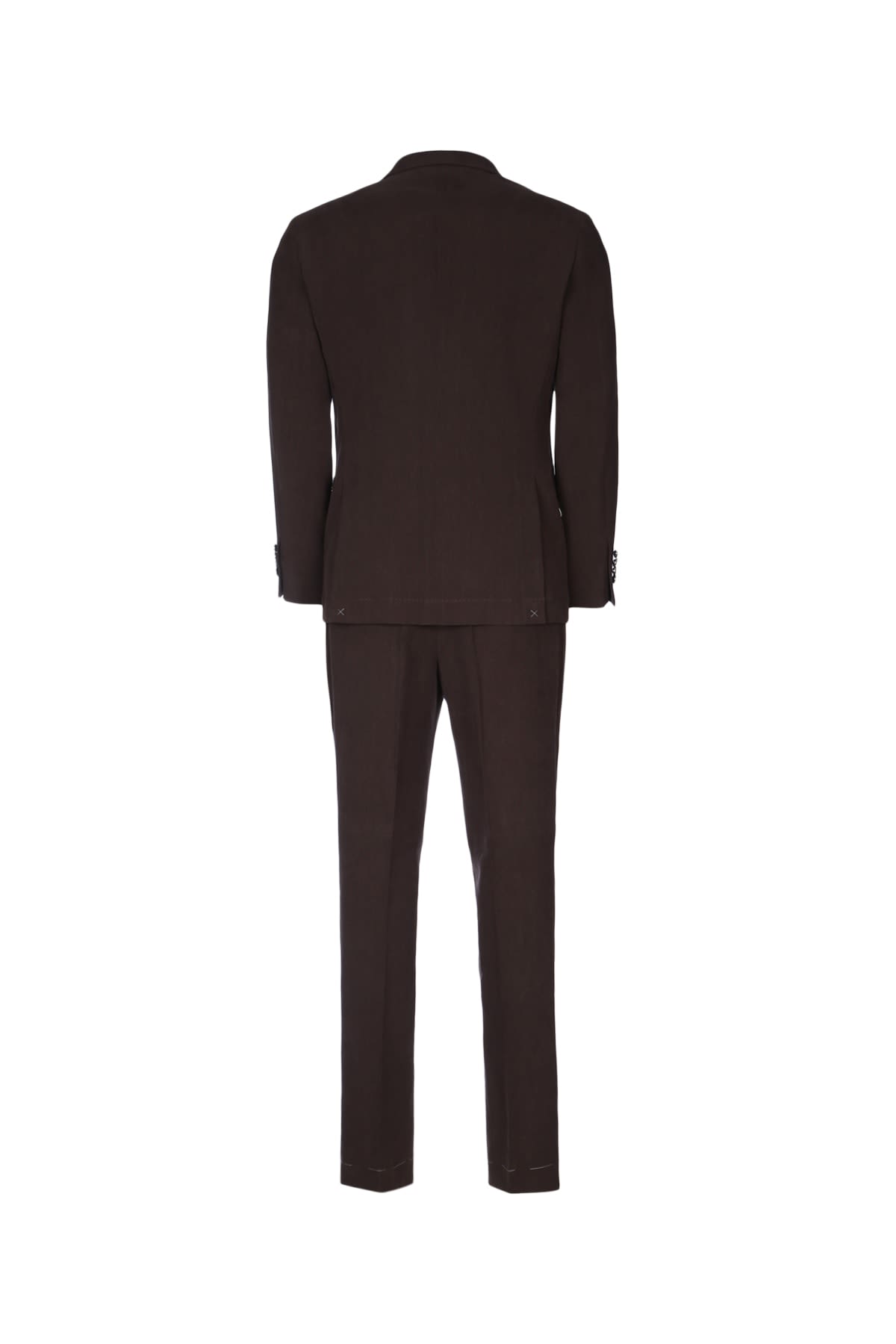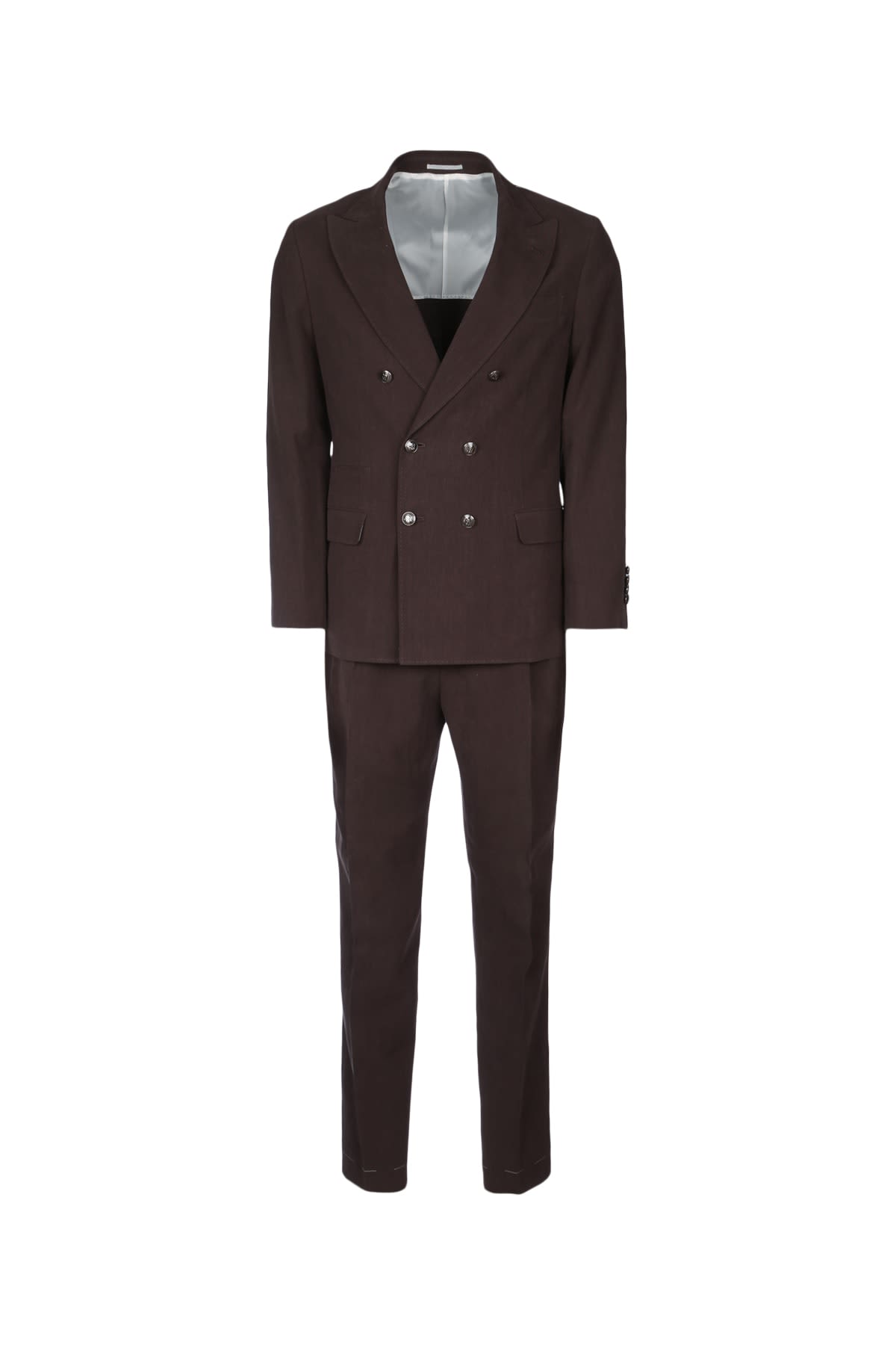 Brown Leisure Fit suit from Brunello Cuccinelli, crafetd from light linen fabric with a "rustic" feel, with double-breasted blazer partially lined and with double vent, trousers with pleats and adjustable buckles on the waistband.