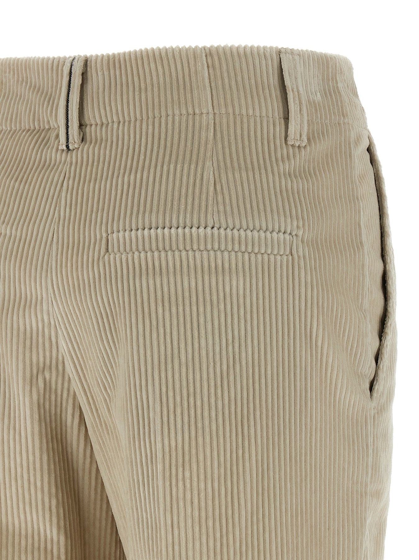 Corduroy pants, crop model, straight leg, stretched pleat, zip hook and button closure on the front, pockets, back Monile detail.