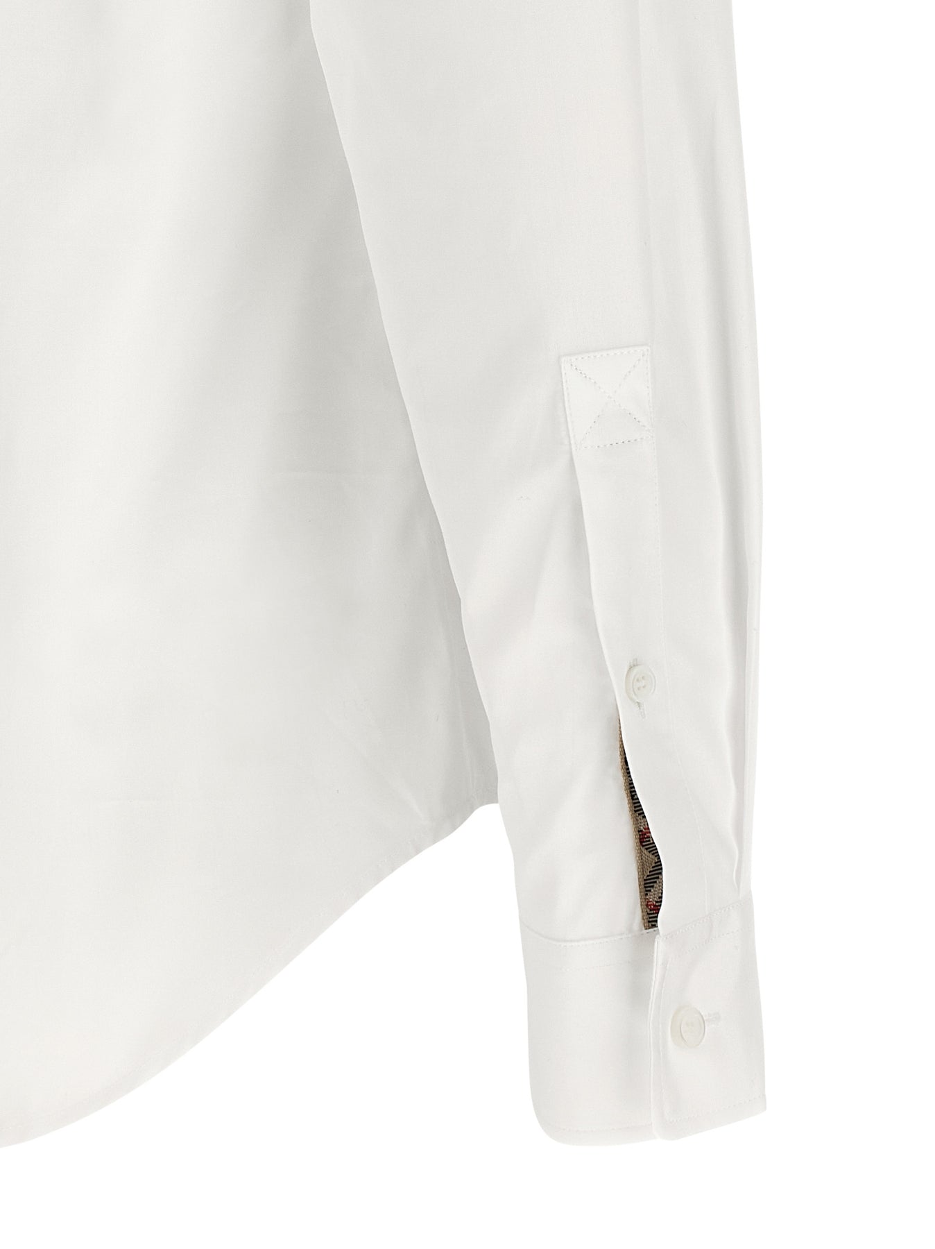 'Sam' cotton poplin shirt with tone-on-tone 'Equestrian Knight Design' embroidery on the front, Burberry Check grosgrain piping button closure, long cuffed sleeves.