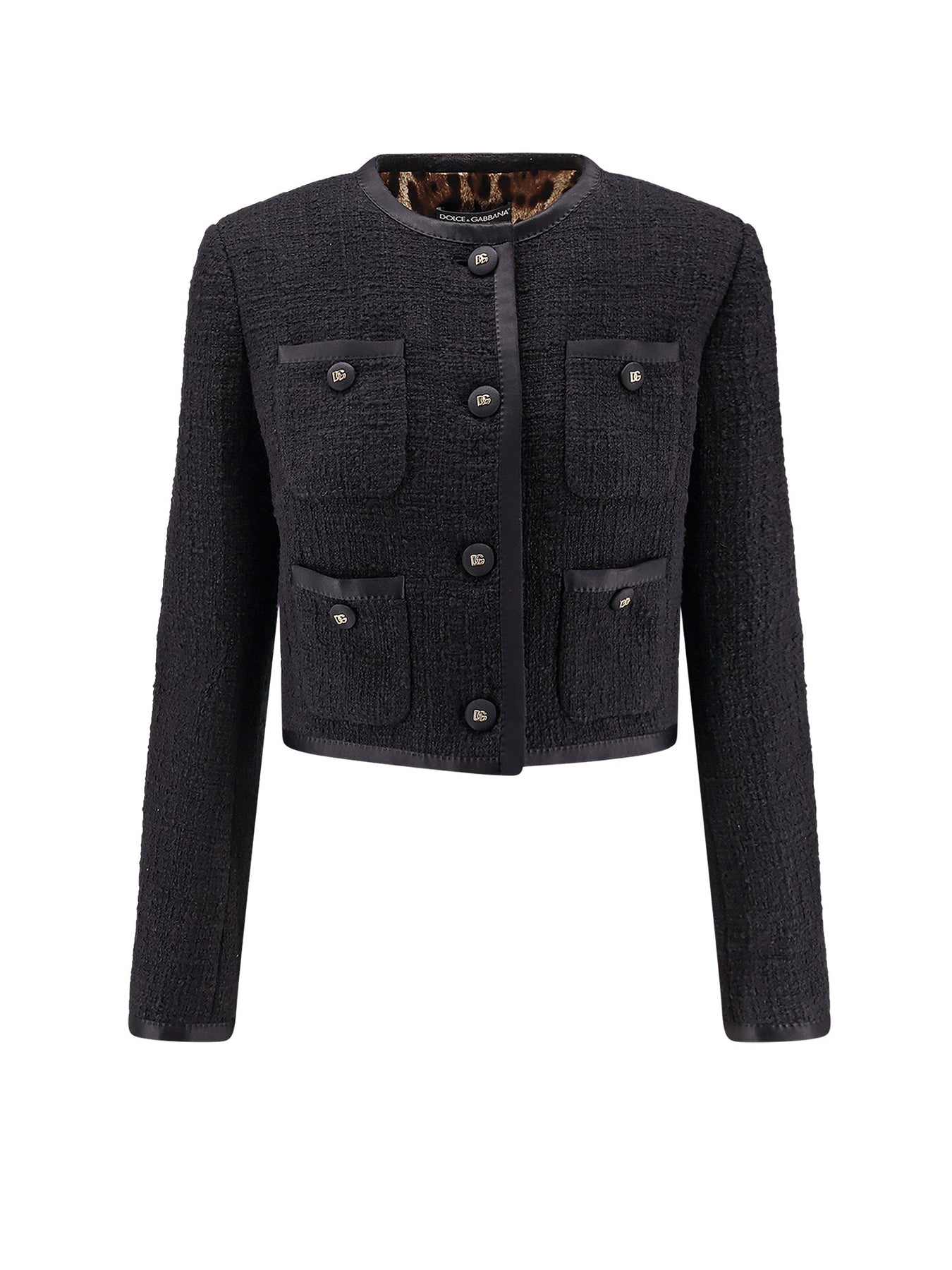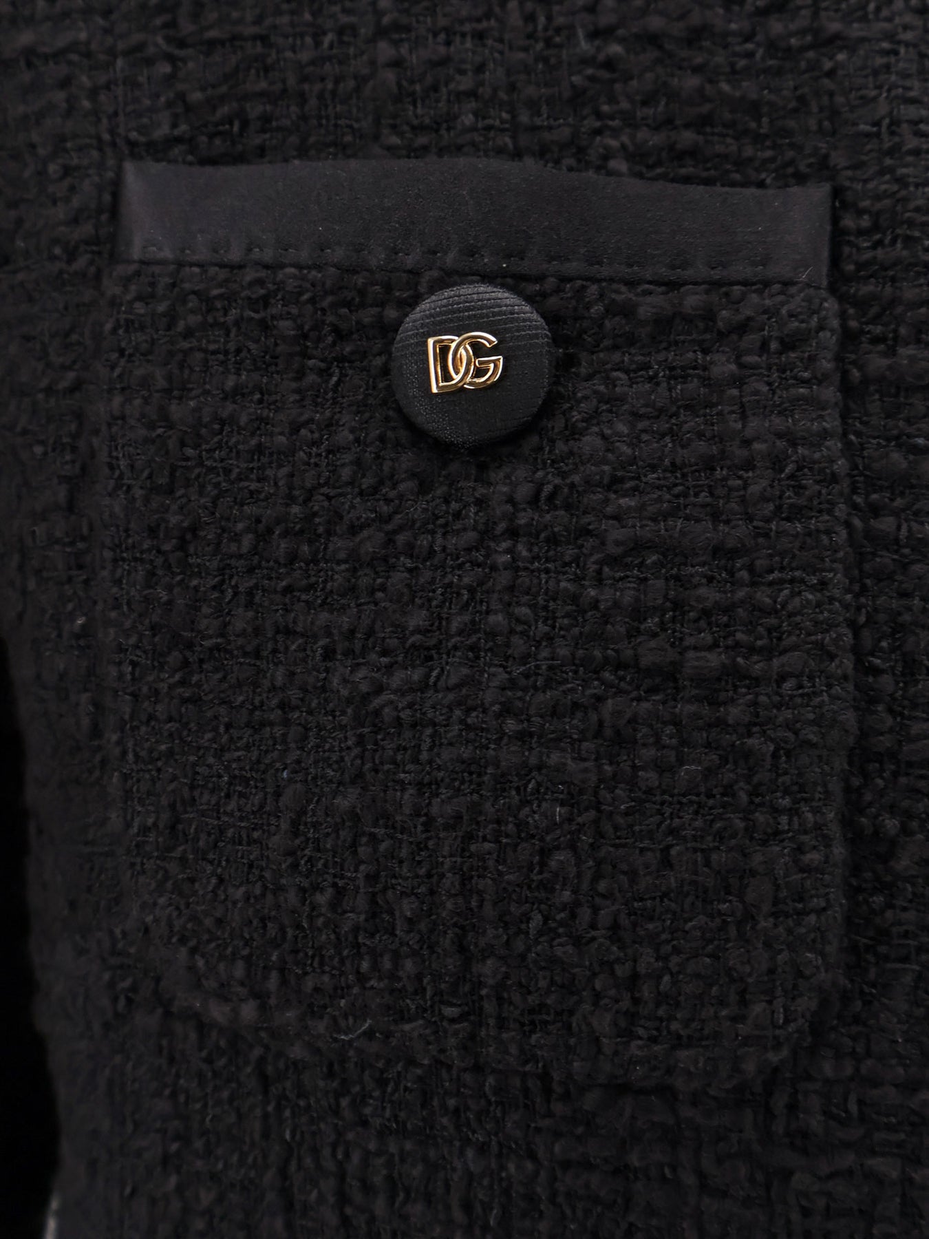 Closure with covered buttons DG buttons Satin profiles Four front pockets with DG buttons Made in Italy 81% cotton 9% viscose 8% silk 2% polyester Lining: 93% silk 7% elastane SKU: F27GOTGDDBZN0000