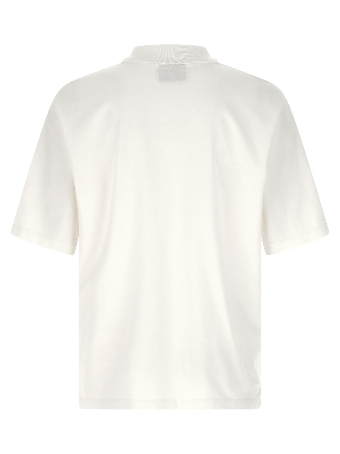 Smooth cotton jersey polo shirt with contrast 'Dsquared2 Signature' embroidery on the front, collar and buttons, short sleeves with dropped shoulders, side slits, and asymmetrical hem.