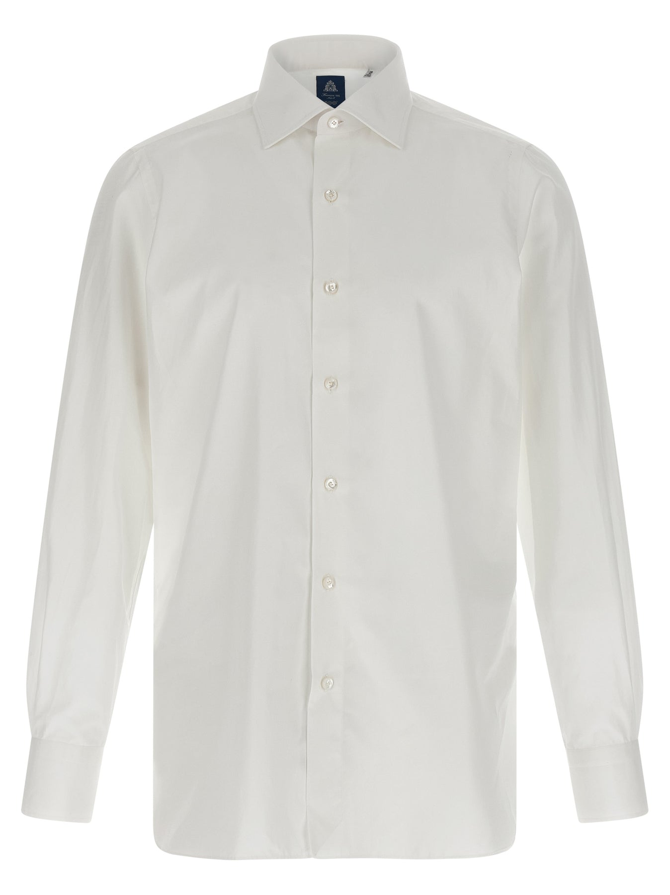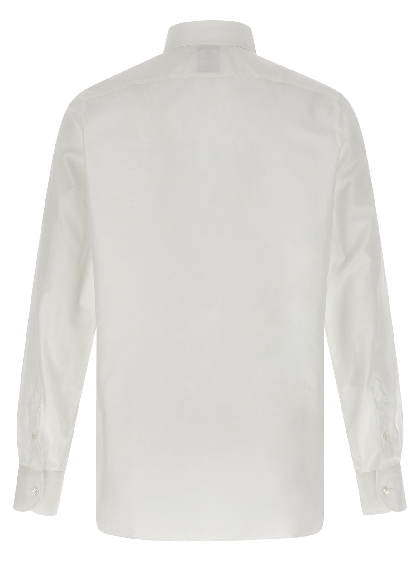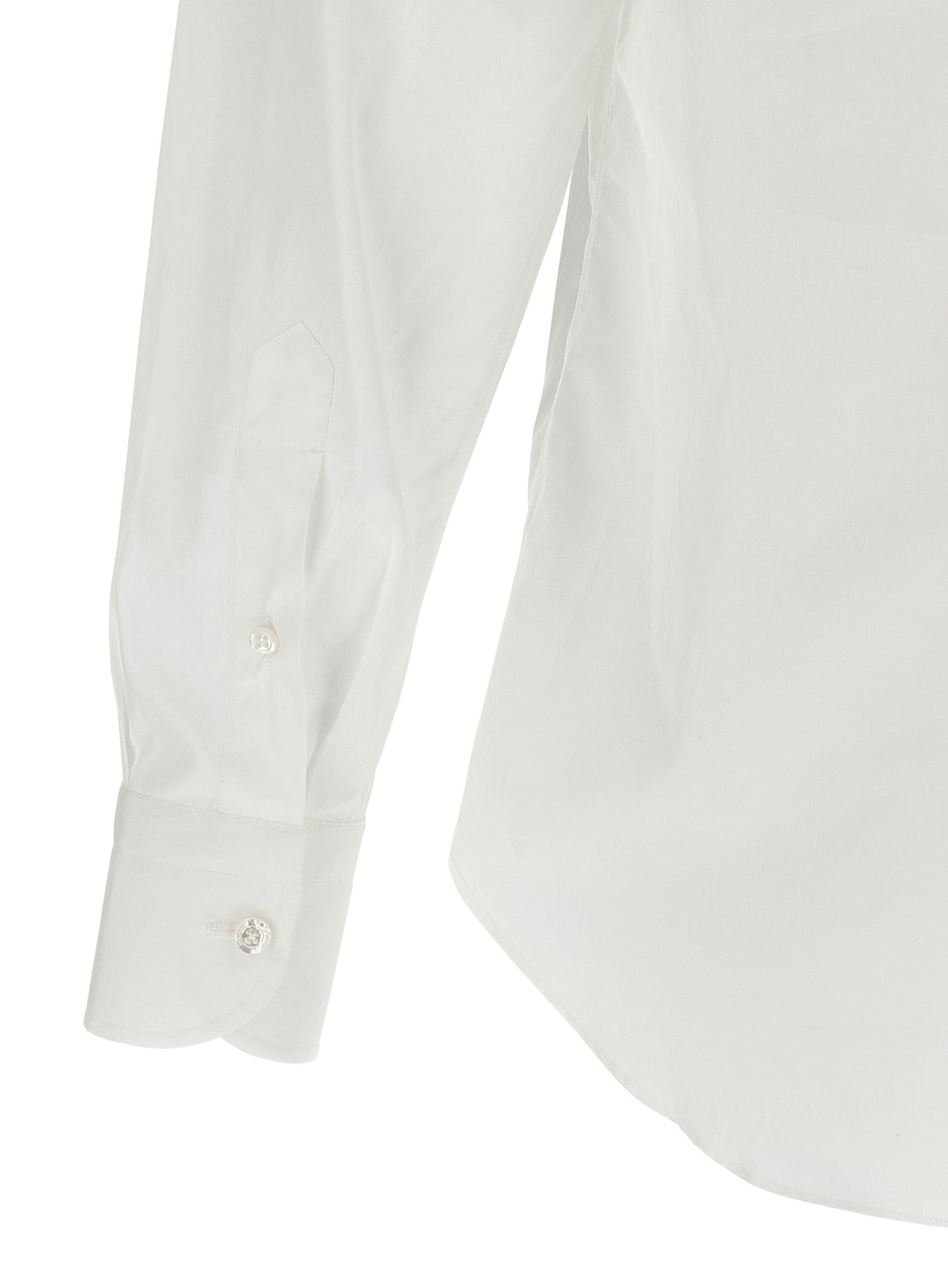 'Napoli' cotton shirt with button closure, long sleeves with cufflinks, contrast satin logo detail on the side slits.
