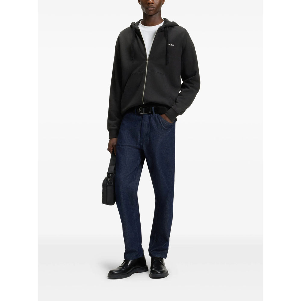 black logo detail adjustable drawstring hood kangaroo pocket long sleeves