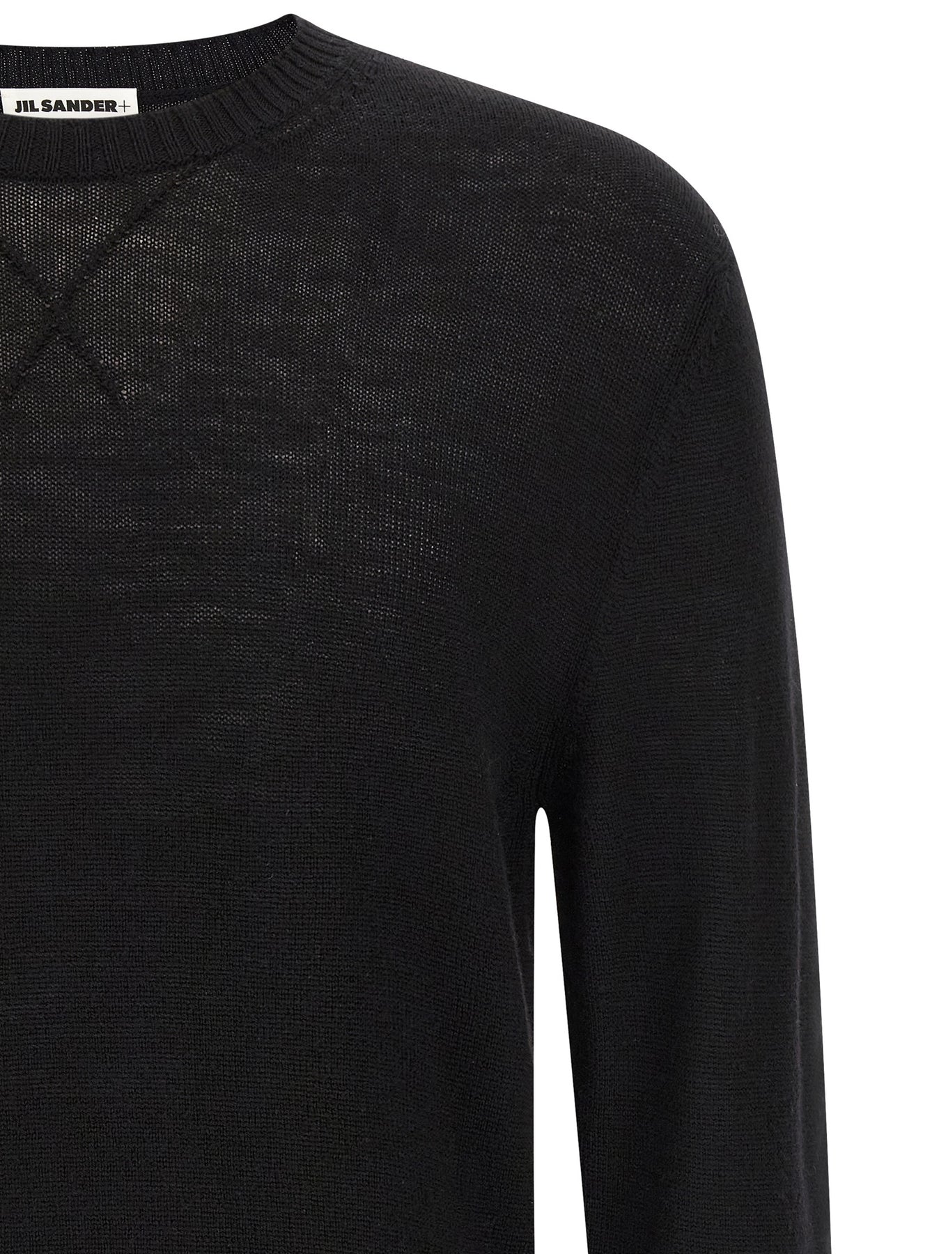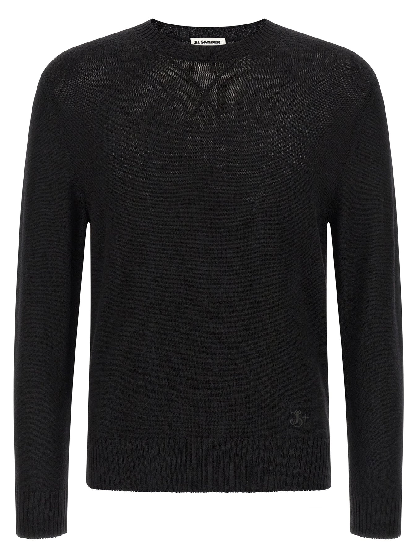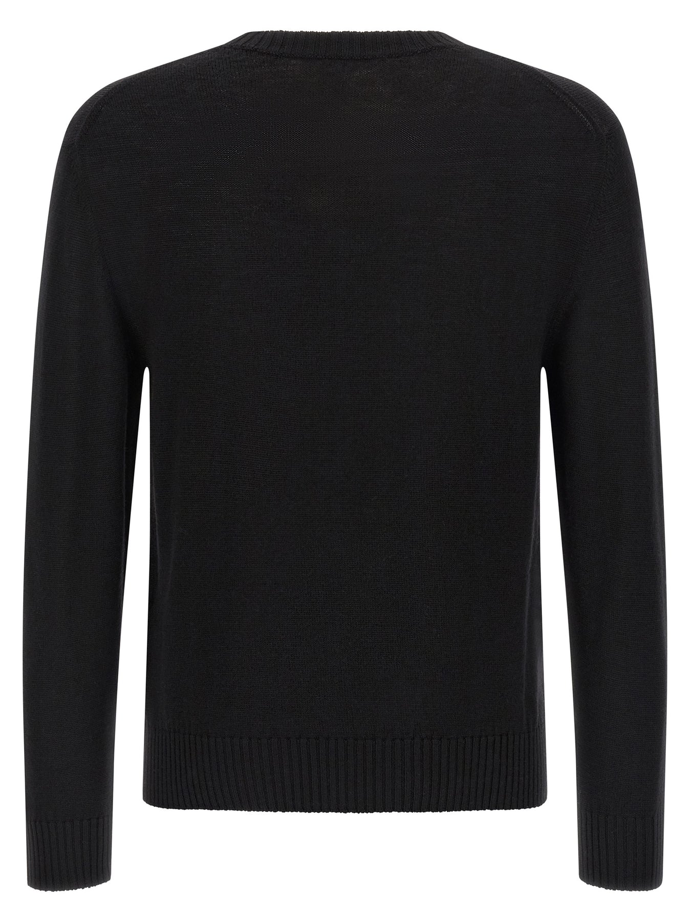 Knitted virgin wool sweater with tone-on-tone logo embroidery on the front, crew neck, long sleeves with cuffs and dropped shoulder.