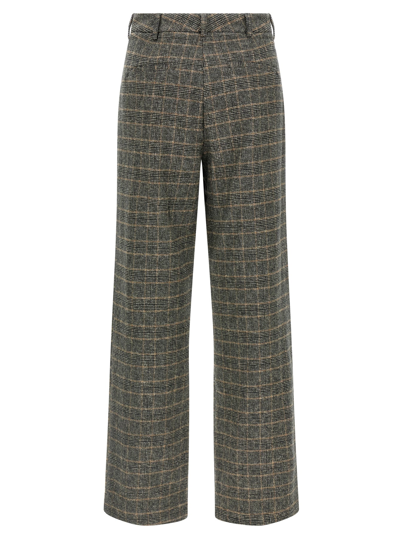 'Sally' check patterned cotton pants, front pins, button and hook closure, pockets, straight leg.
