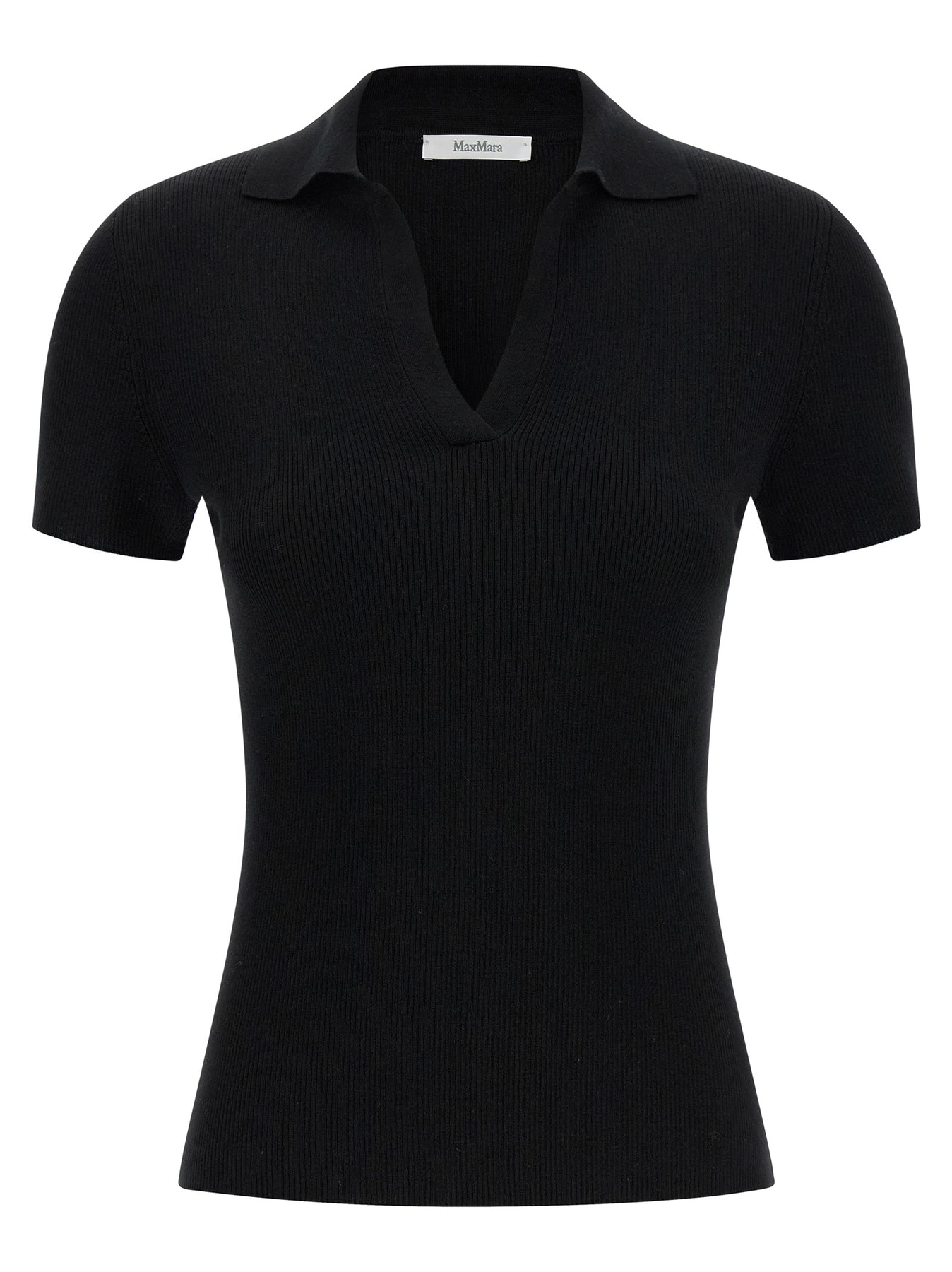 'Mxmalbero' polo shirt in thin yarn of pure ribbed mélange wool, collar and V-neck, and short sleeves.