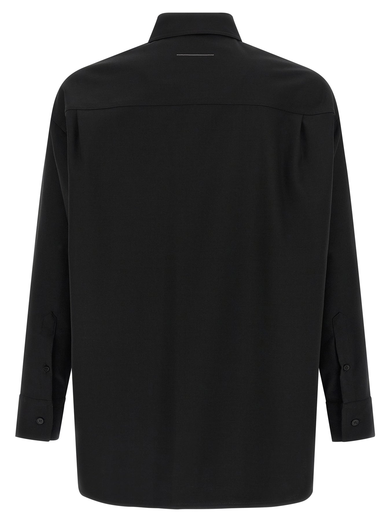 Sartorial wool blend shirt, inner jacquard labels on the front, button closure, long cuffed sleeves, 'White Stitch Line' at the back.