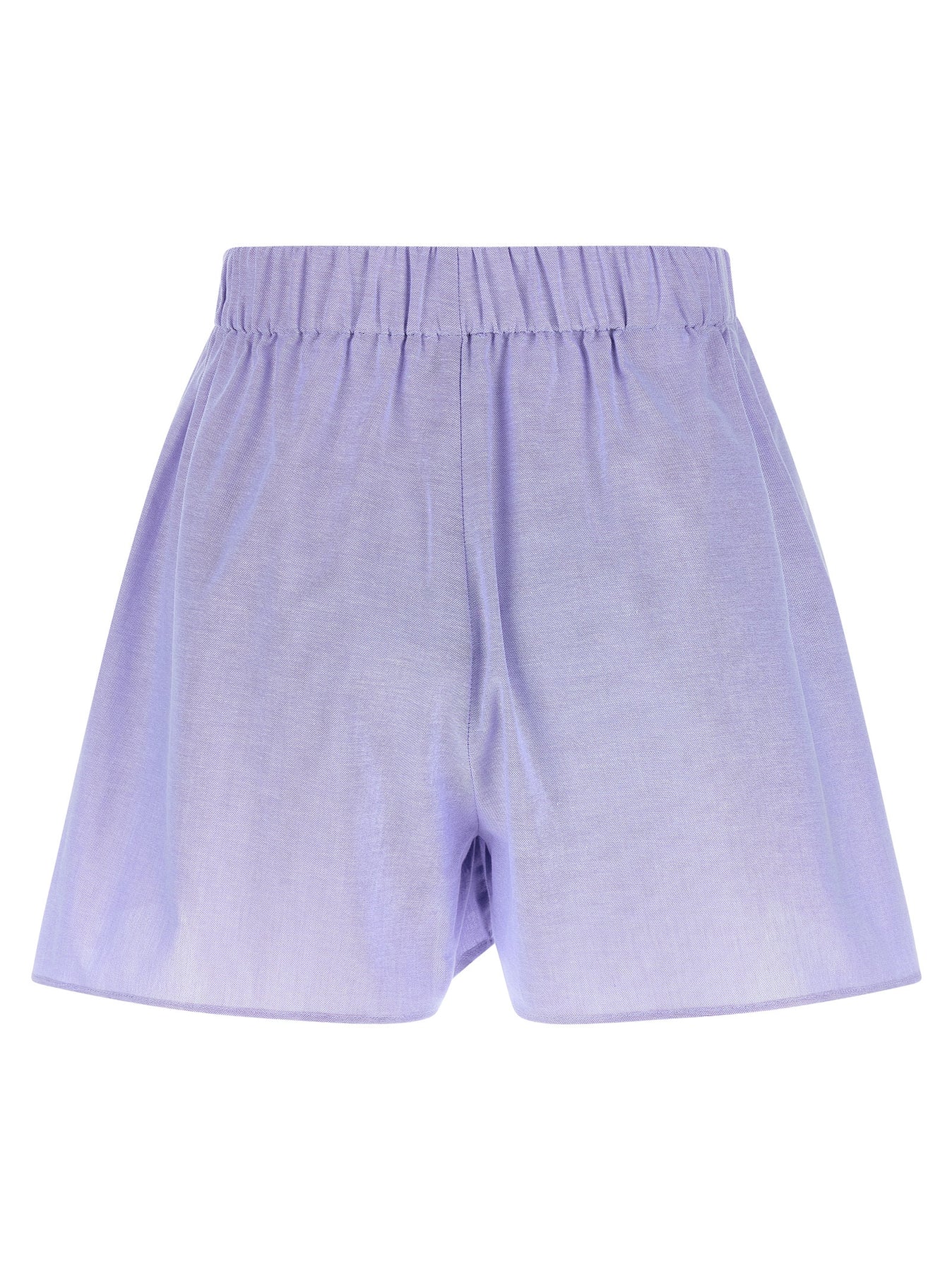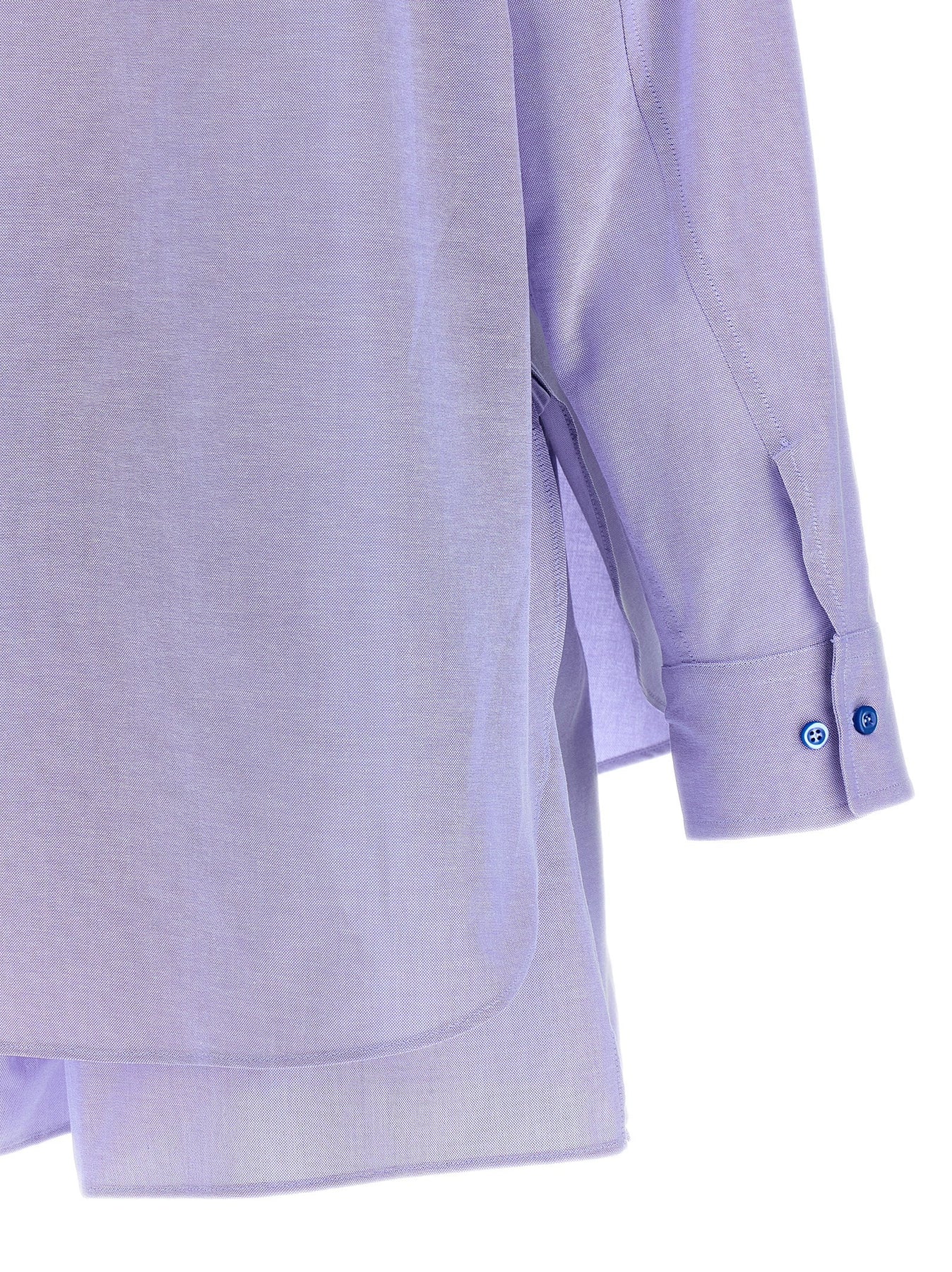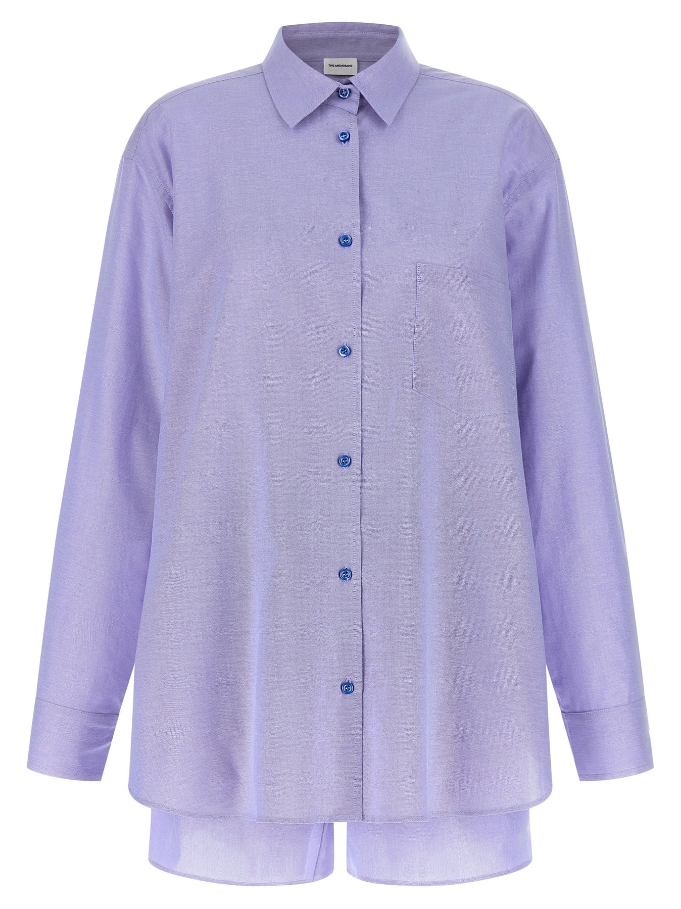 Solid oxford cotton Georgiana Set suit consisting of pointed collared shirt, front button closure, breast pocket, long sleeves with cuffs and dropped shoulder, side slits and boxer shorts, elastic waistband, trompe l'oeil flap with buttons, pockets, side slits.