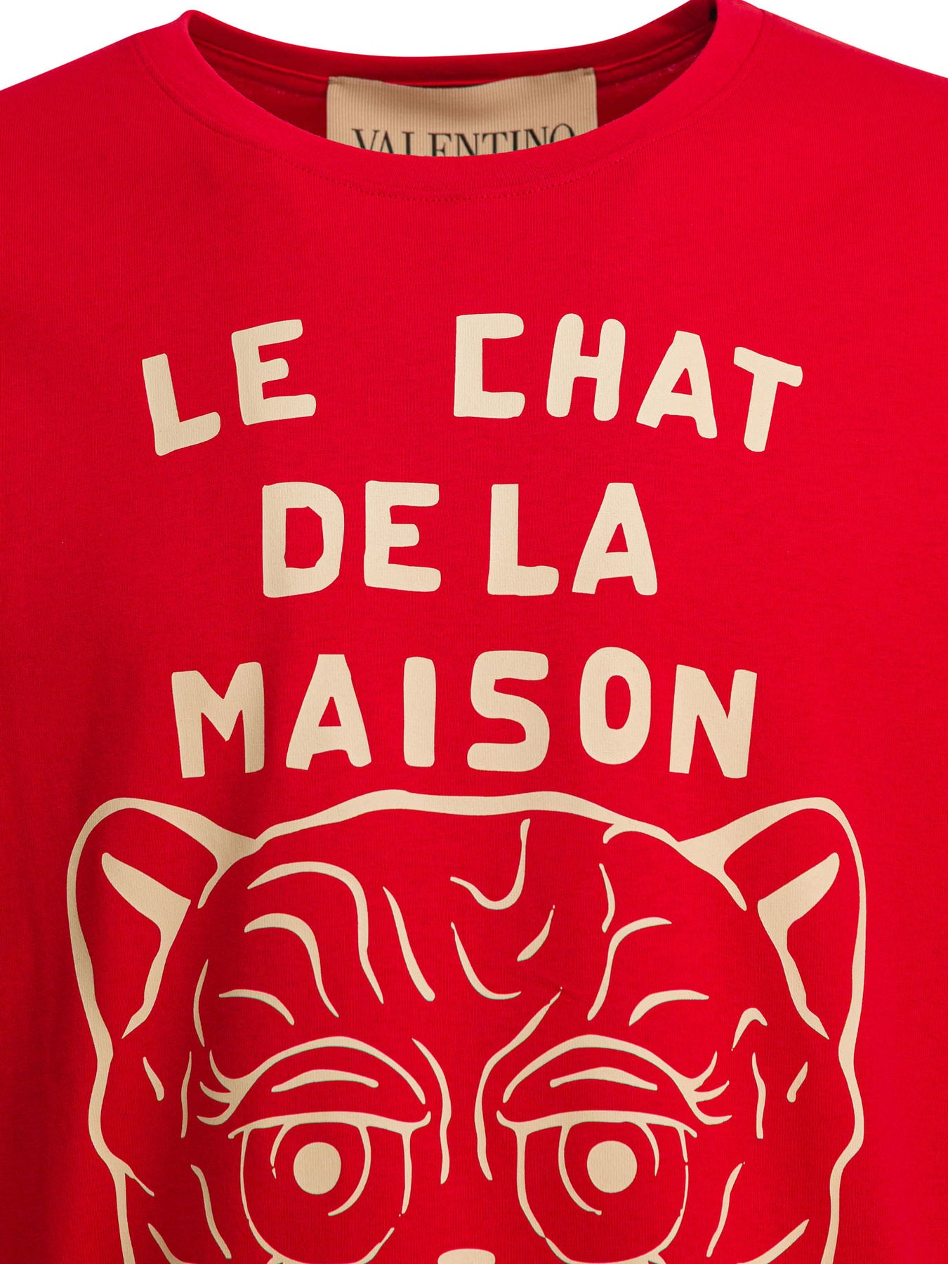 Valentino "Le Chat De La Maison" t-shirt in cotton. Regular fit model with a straight line and soft texture. Features a Le Chat De La Maison graphic print applied at chest level. Ribbed collar and tone-on-tone stitching complete the construction. Cotton fabric lends lightness and comfort to the wear. Short sleeves and clean finish help define the essential silhouette. || - Le Chat De La Maison print at chest - Short sleeves - Cotton fabric - Ribbed collar - Regular fit
