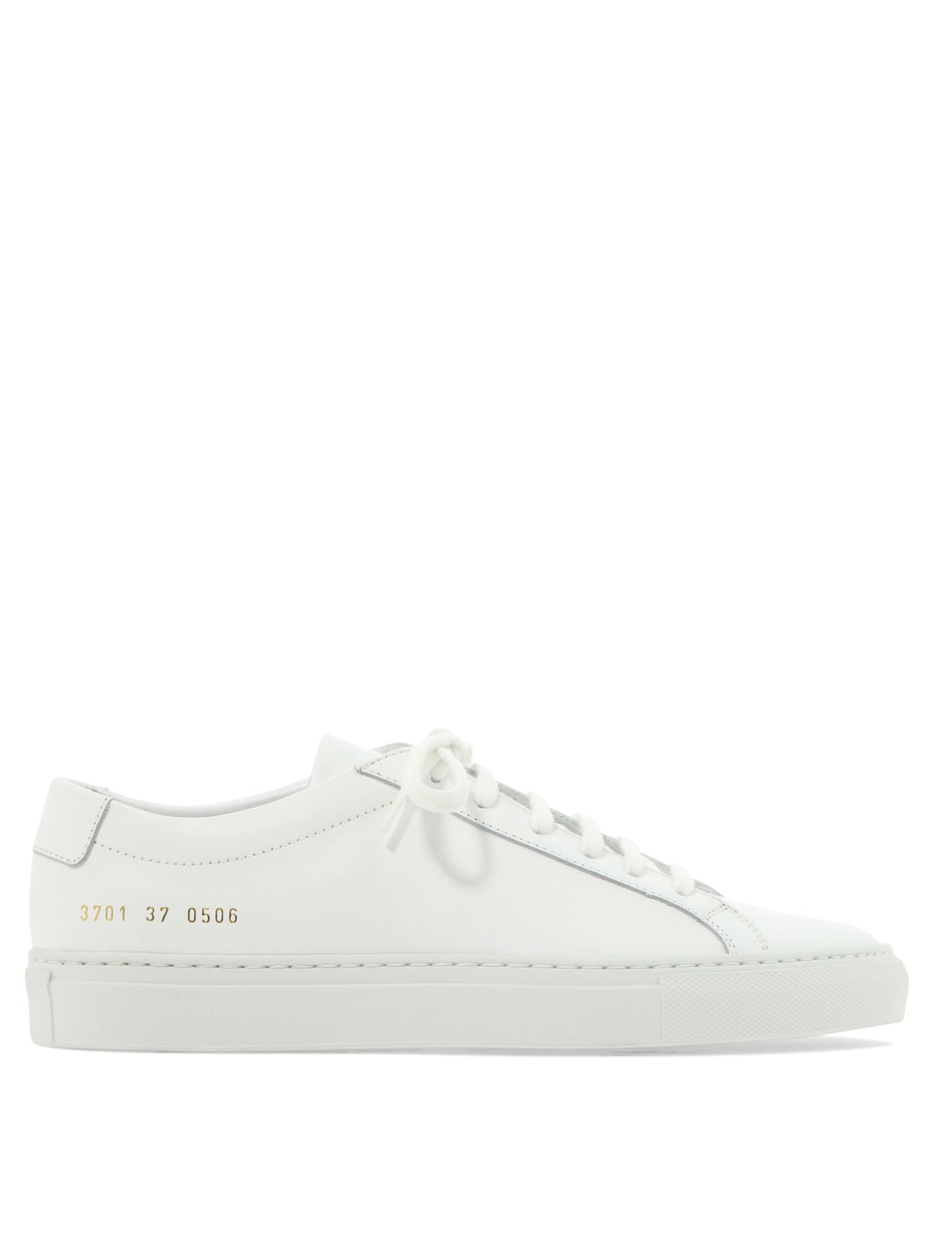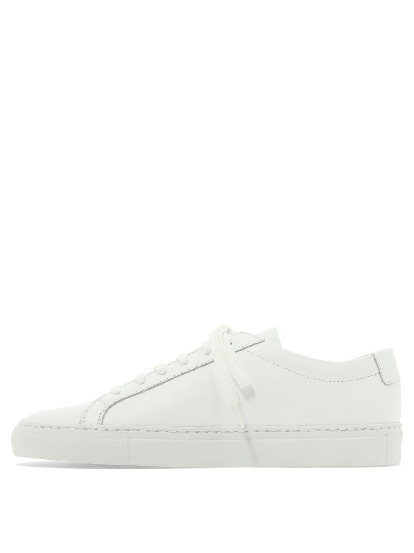 Common Projects "Original Achilles" sneakers features a leather construction with a smooth upper with no visible stitching, interrupted only by the individual numbering stamped on the side. The structure is defined by an essential low-profile silhouette, with a linear midsole connected to the rubber outsole. The design favors regular surfaces and minimalism in details, with no decorative elements or visible reinforcements. The closure system features blind eyelets and flat laces. || - Leather upper - Serial number stamped on the side - Rubber outsole - Lace-up closure - Leather-covered insole