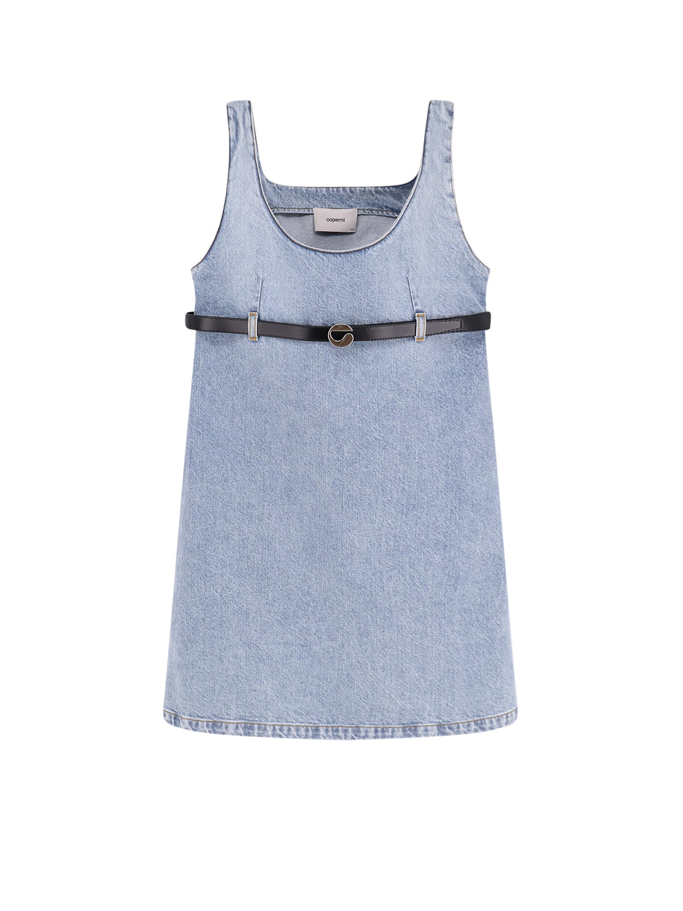Side zip closure Rounded neckline Belt loops Leather belt with metal monogram 100% cotton SKU: COPR148F2024_BLU