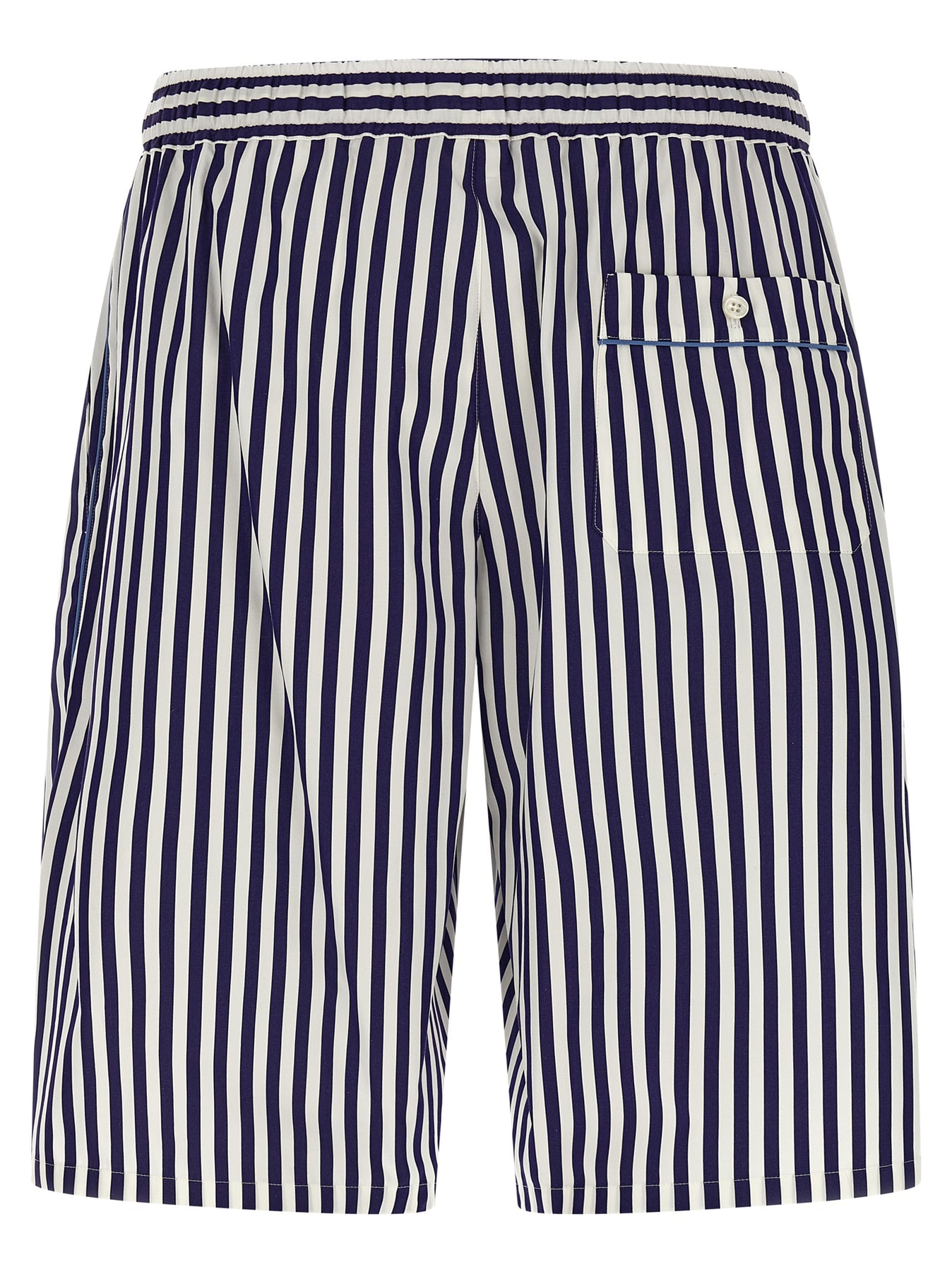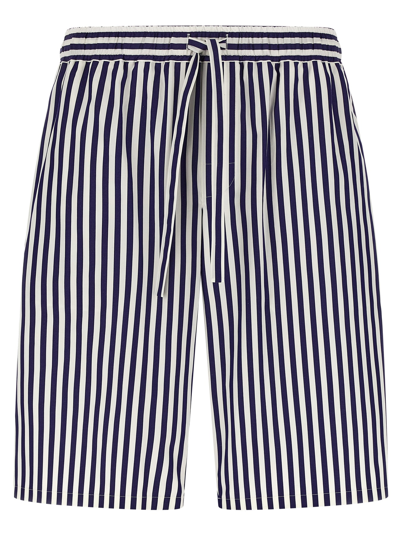 Bermuda shorts in striped cotton and silk blend poplin shorts, wide leg, drawstring elastic waistband, trompe l'oeil flap, pockets.