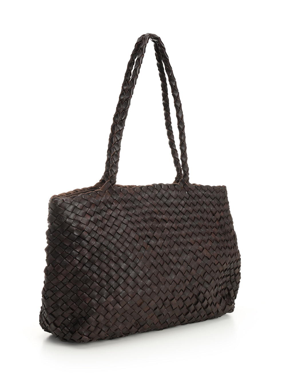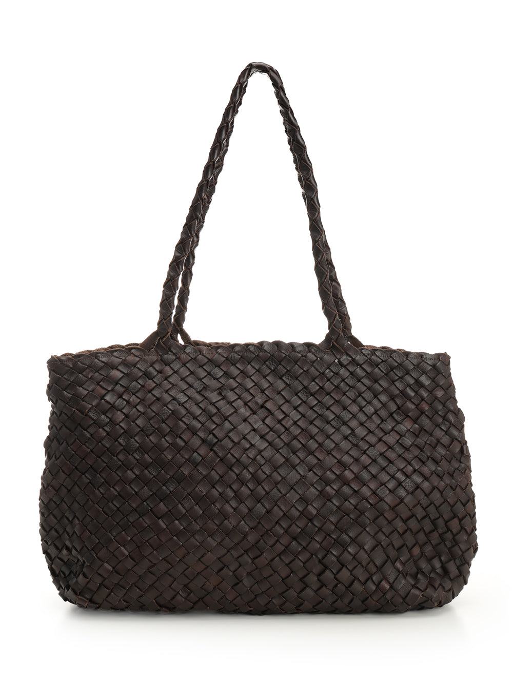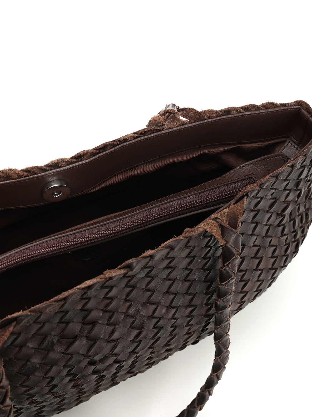 Dragon Diffusion Handwoven Leather Vintage Mesh Tote Bag with Cotton Lining and Removable Zipper Pocket