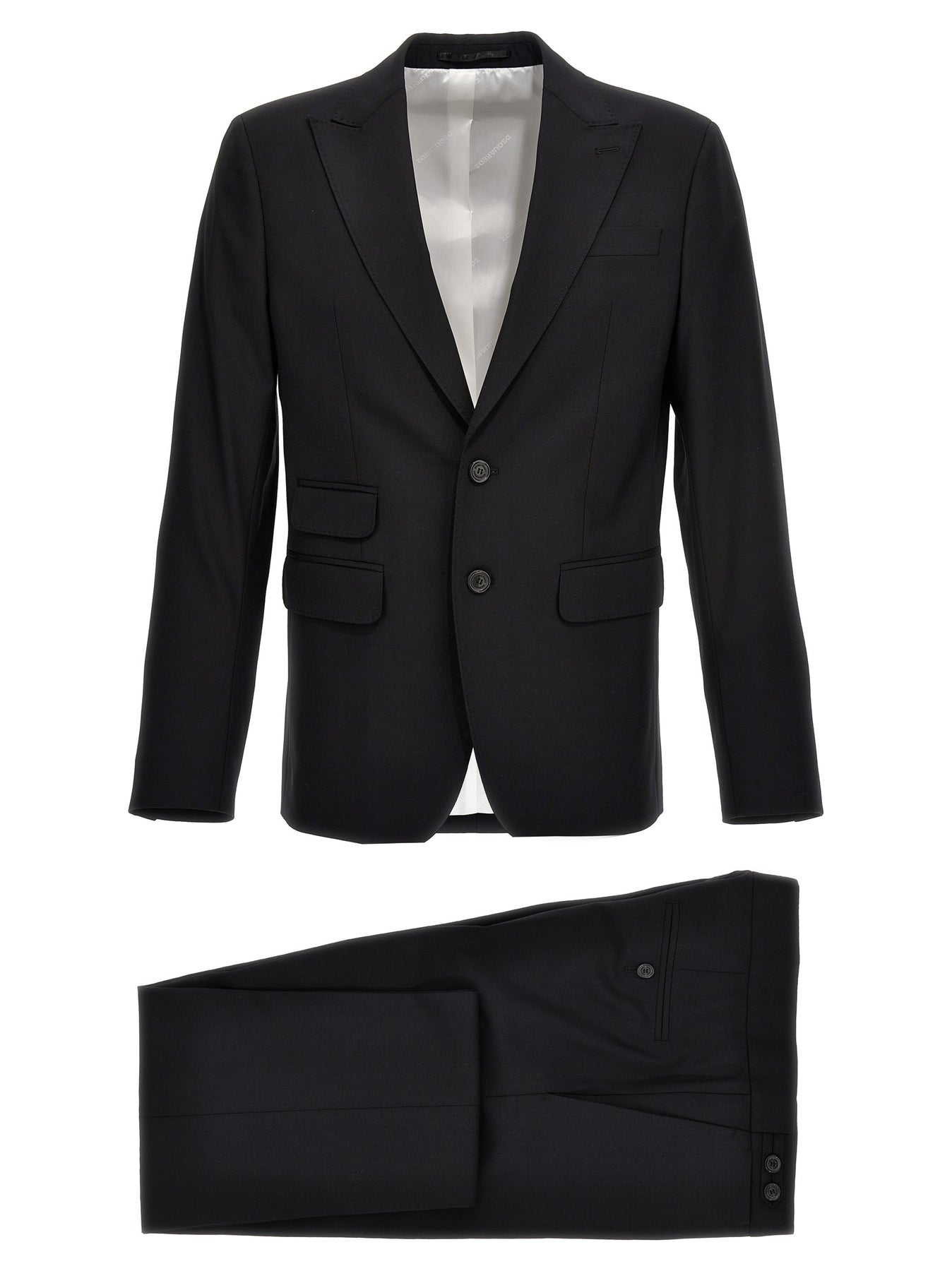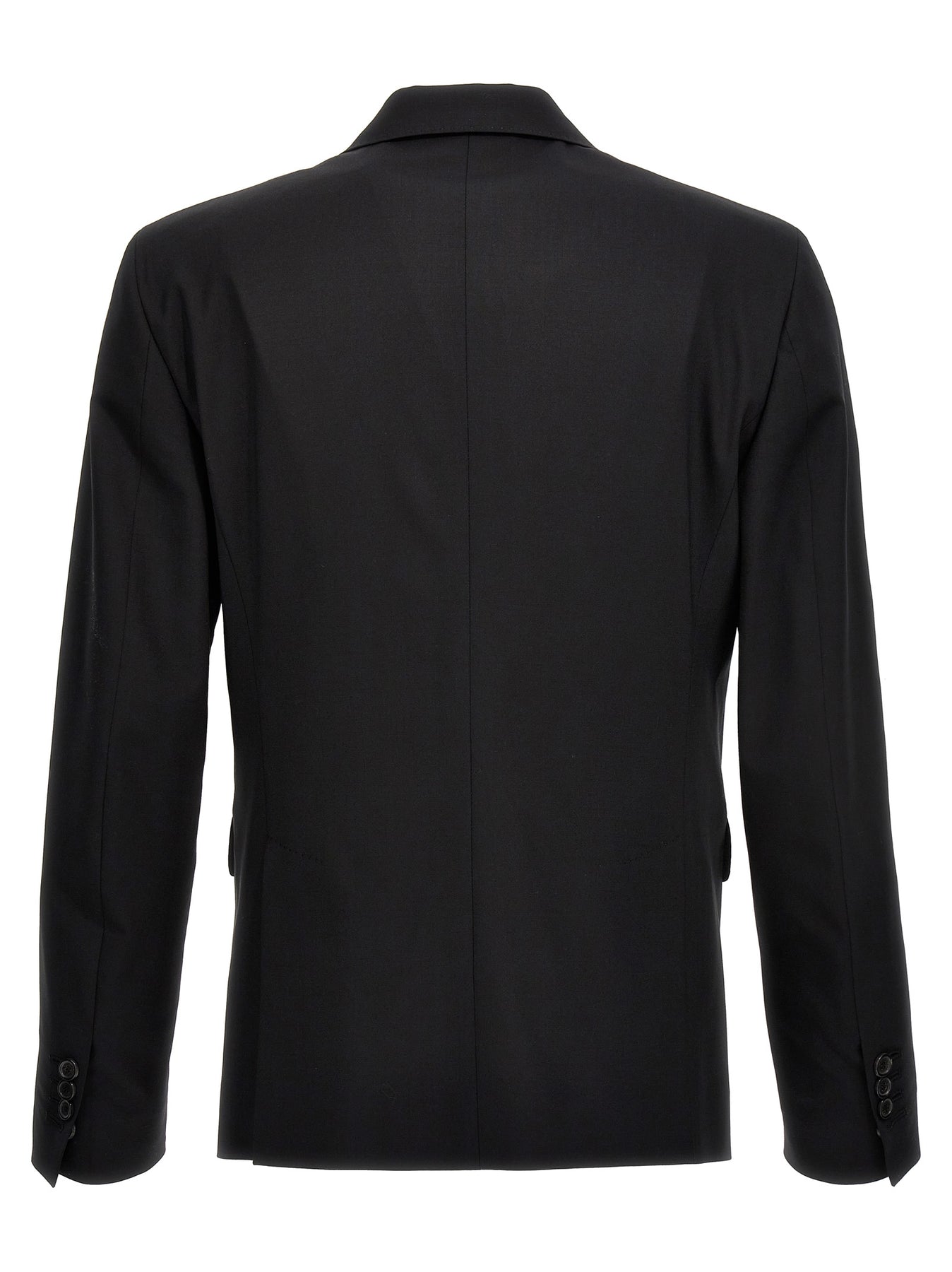 London' wool dress with single breast blazer jacket with button closure, pockets, long sleeves, back splits, pants with zip, hook-and-eye and button closure, straight leg with central crease and pockets.