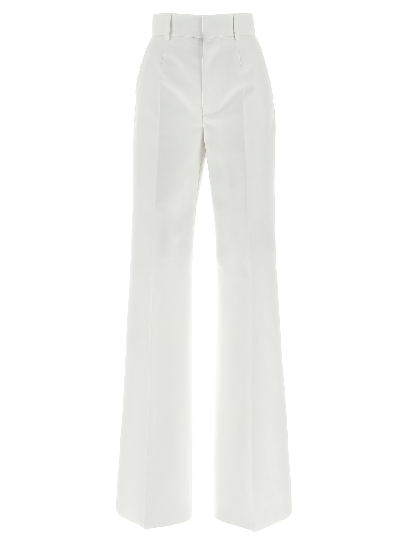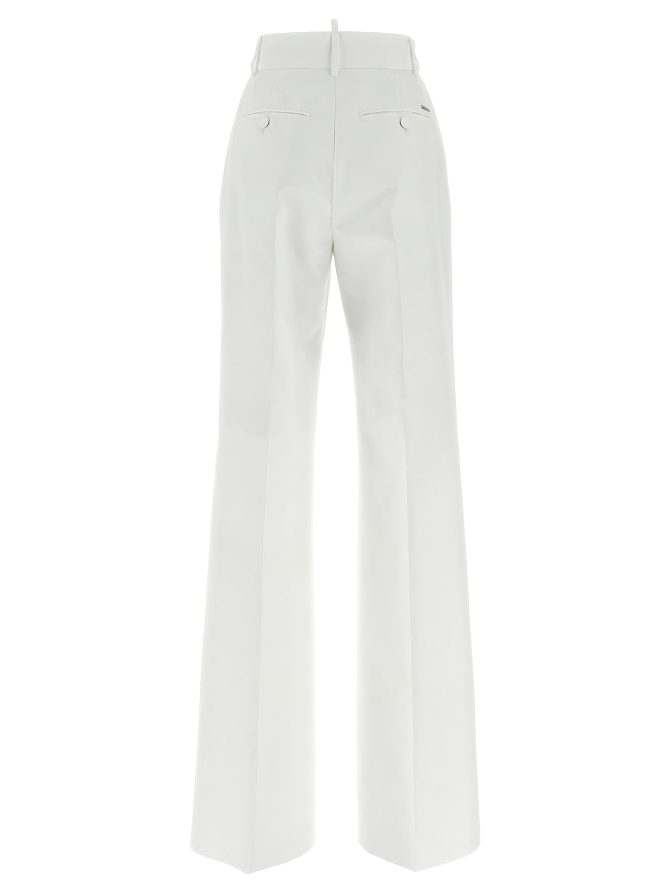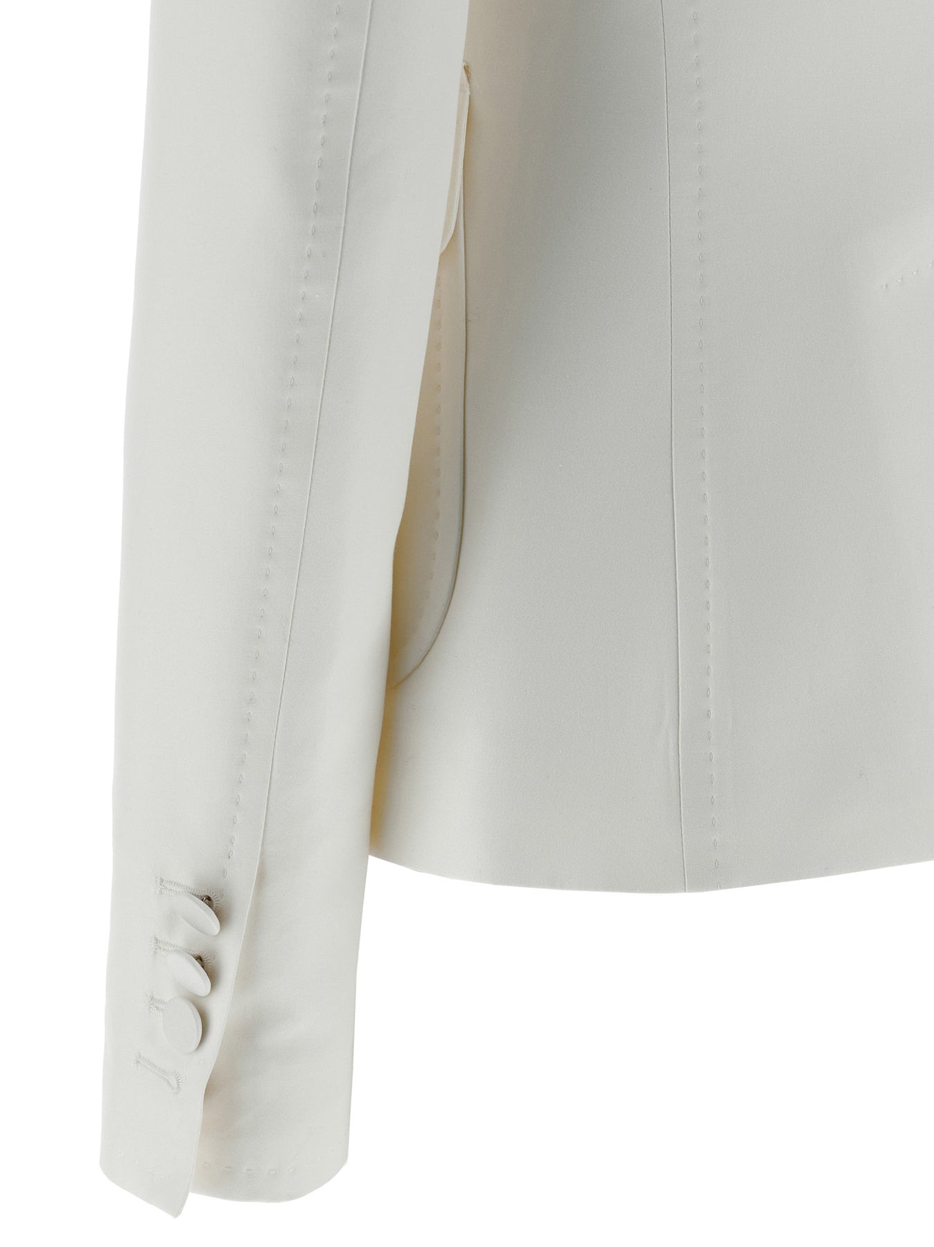 'Bianca Day Suit' cotton and silk dress consisting of a flared blazer, a neckline with lapels and tone-on-tone stitching, a front 1-button closure, front patch pockets, wide front stretched pleat pants, a straight leg, side pockets, and a zip and hook closure.