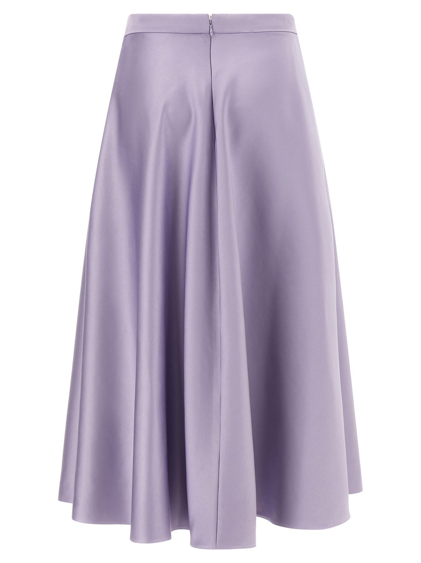 Duchesse midi skirt, front metal logo, flared silhouette, pockets, back zip closure.