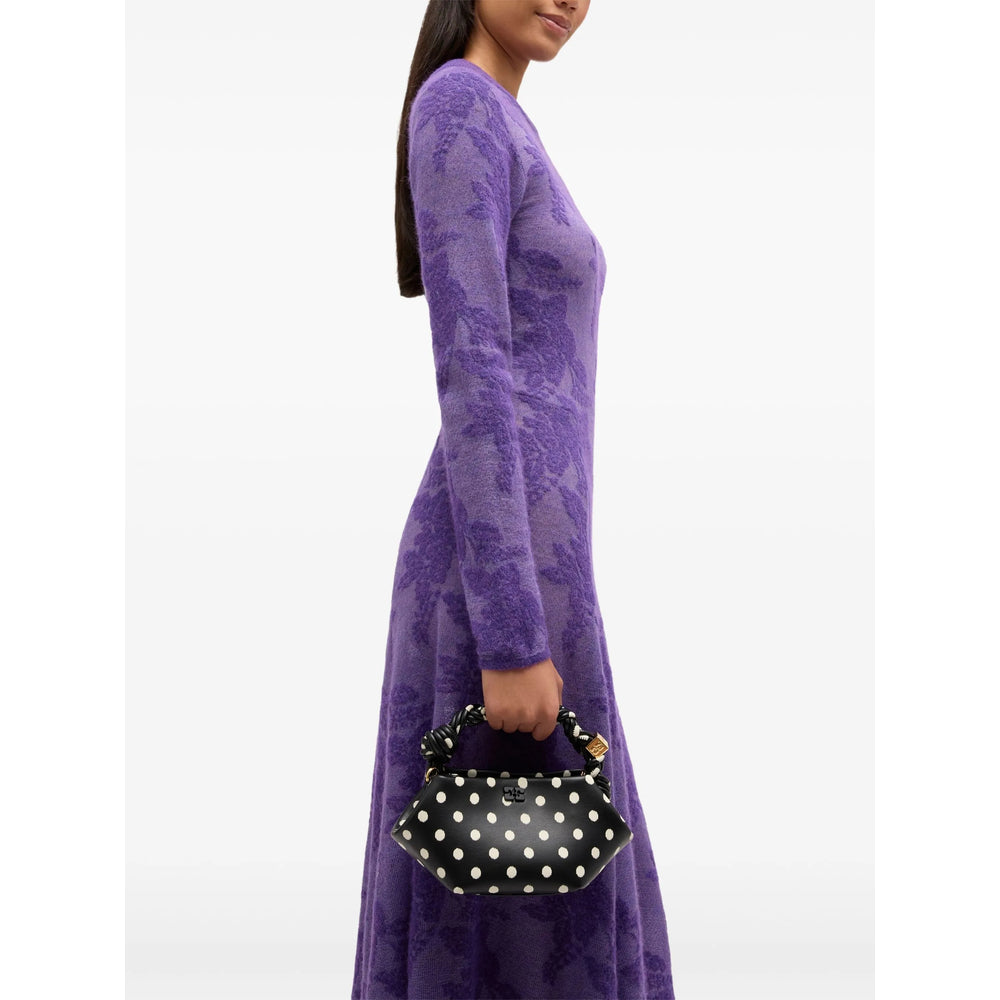 black polka dot pattern twisted top handle detachable shoulder strap gold-tone hardware logo detail