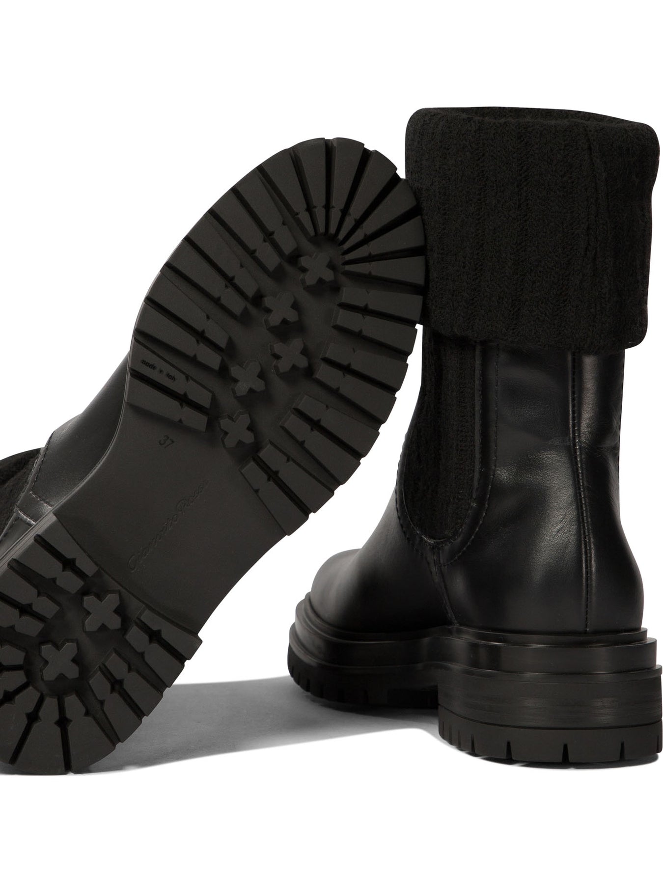 Gianvito Rossi's "Tenney" ankle boots are the perfect blend of style and comfort. Designed to accommodate the foot with their pull-on construction, these boots are ideal for the modern woman looking for a versatile option to complete her wardrobe. With a refined design and details in leather and ribbed stretch fabric, the "Tenney" ankle boots easily fit any look. || - Fit: Pull-on - Made of leather and ribbed stretch fabric - Tone-on-tone rubber sole - Round toe || These ankle boots pair perfectly with a pair of high-waisted jeans and a white shirt for a casual-chic look. For a more elegant choice, wear them with a midi dress and minimalist accessories. Discover the versatility of the "Tenney" ankle boots and let them become your go-to piece for any occasion.
