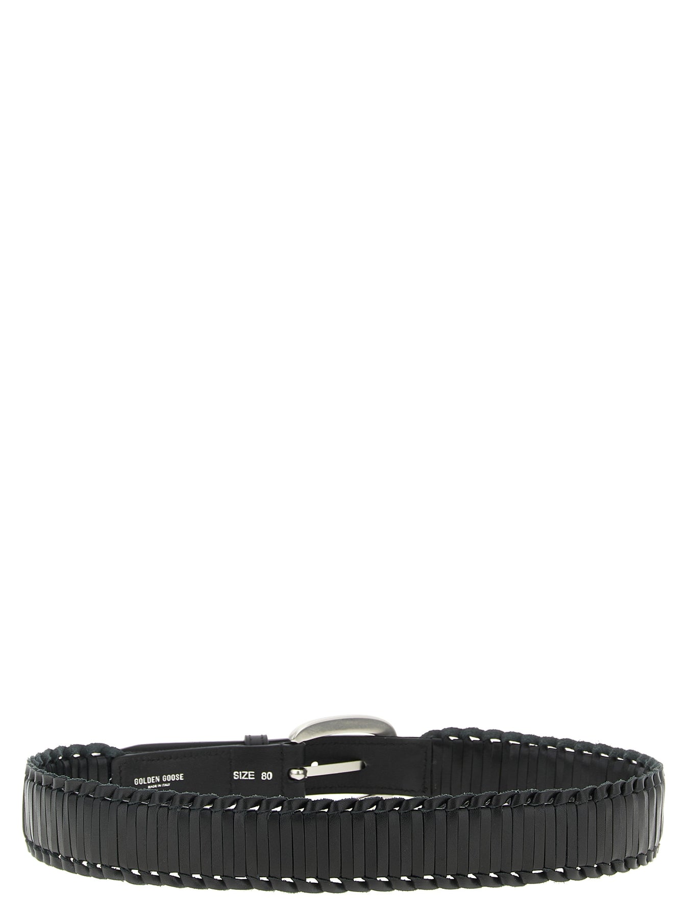 'Houston' braided leather belt, metal buckle with engraved logo.
