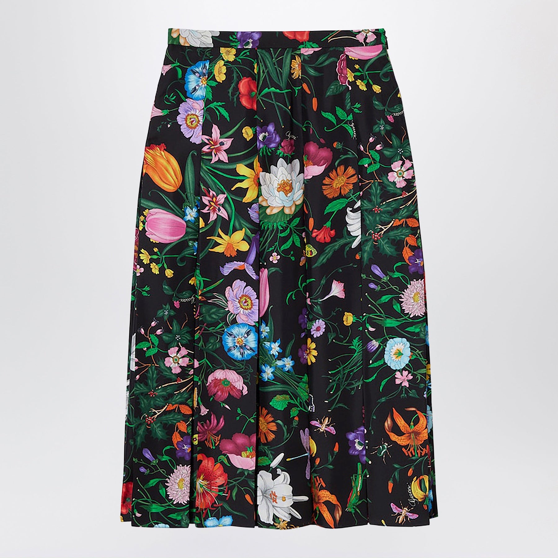Pleated Midi Skirt In Silk Twill With Flora Print