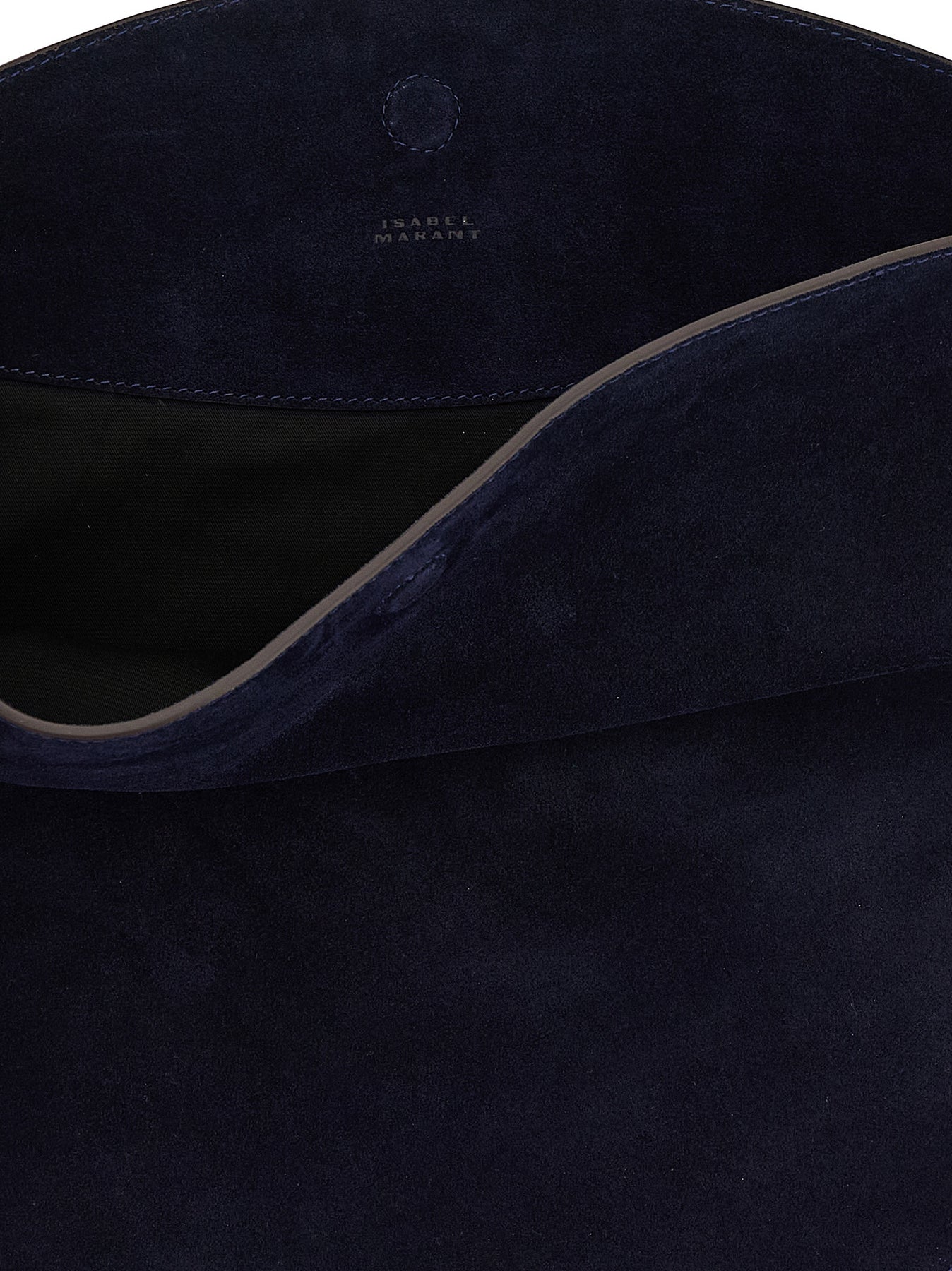 Oskan Hobo Soft' suede shoulder bag with metal stud appliqué, magnetic closure, fixed handle, and removable clutch.