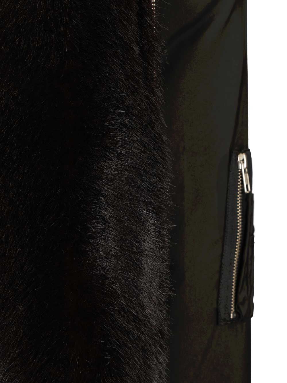 Bomber jacket with faux fur trim from MM6 Maison Margiela, featuring a zip fastening at the front, ribbed cuffs and hem, side flap pockets with snap buttons, a zipped storage pocket at the sleeve, a faux fur collar, cuffs and hem and a white stitching line at the back.