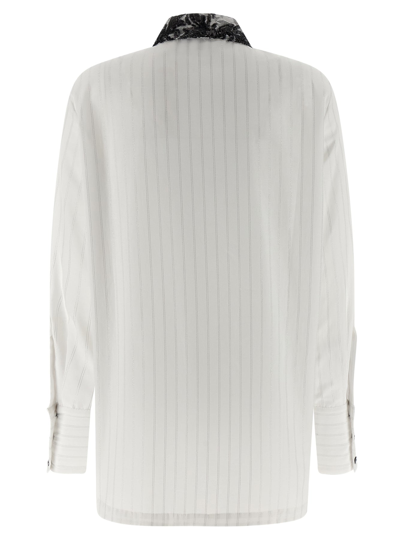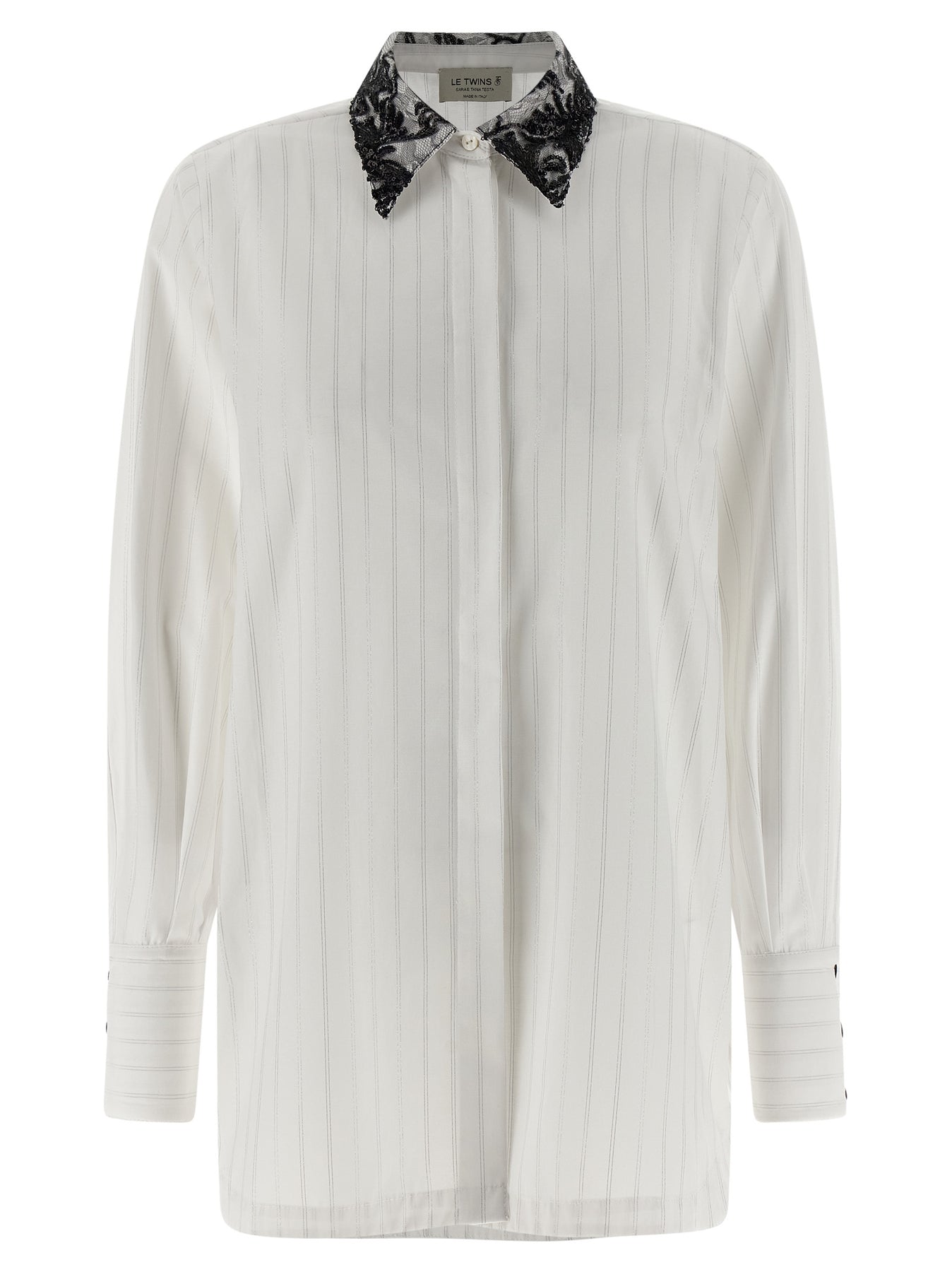 'Daniel' shirt in striped cotton poplin with lace collar and sequin embroidery, front button closure, long sleeves with cuffs and contrast buttons.