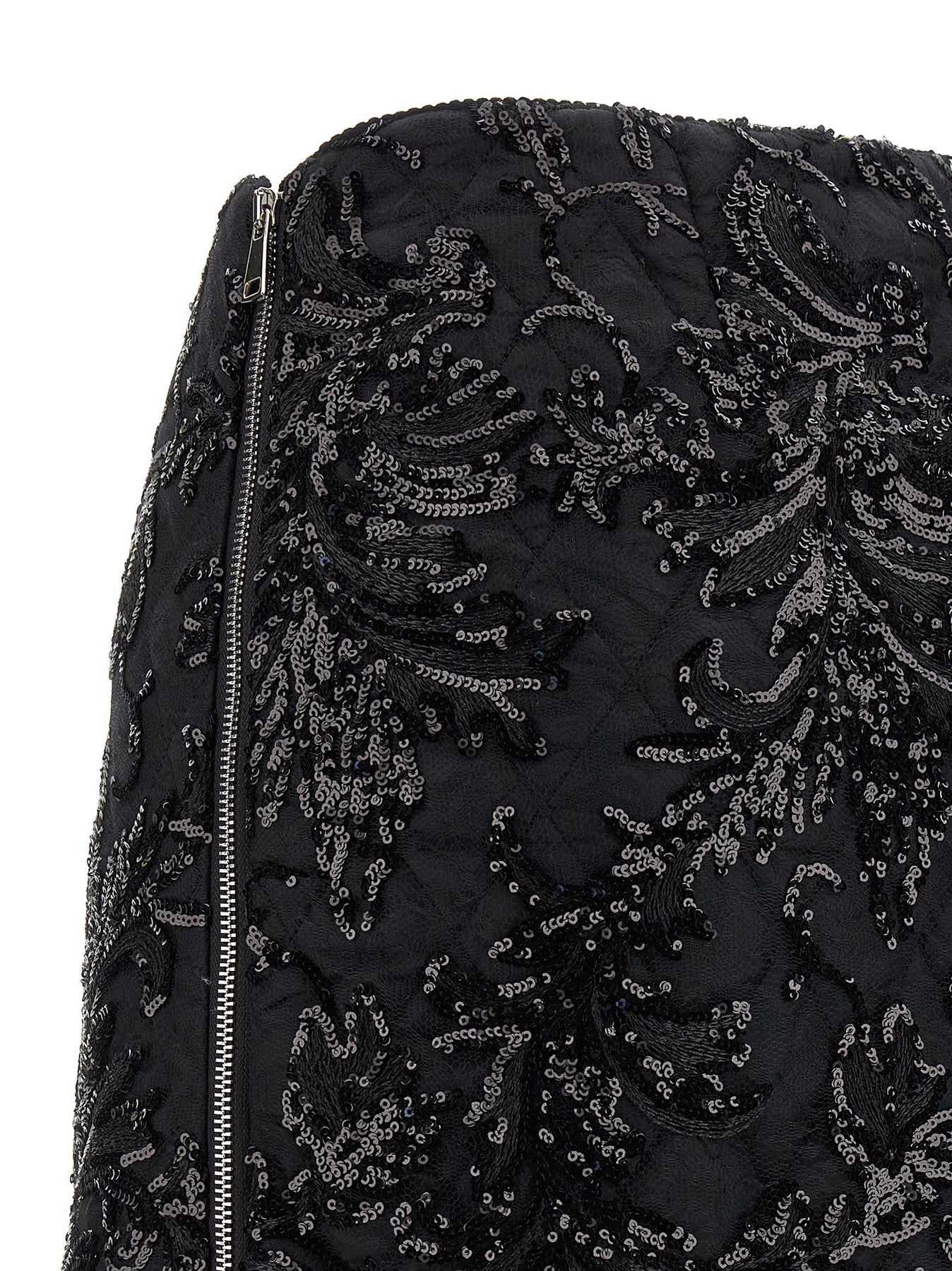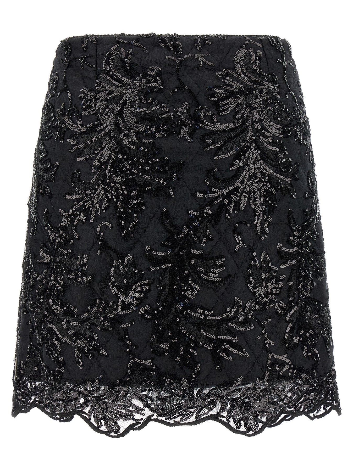 Mini 'Moni' skirt consisting of a slightly padded and quilted layer and a lace layer embroidered with micro-sequins, side detail with metal zip.