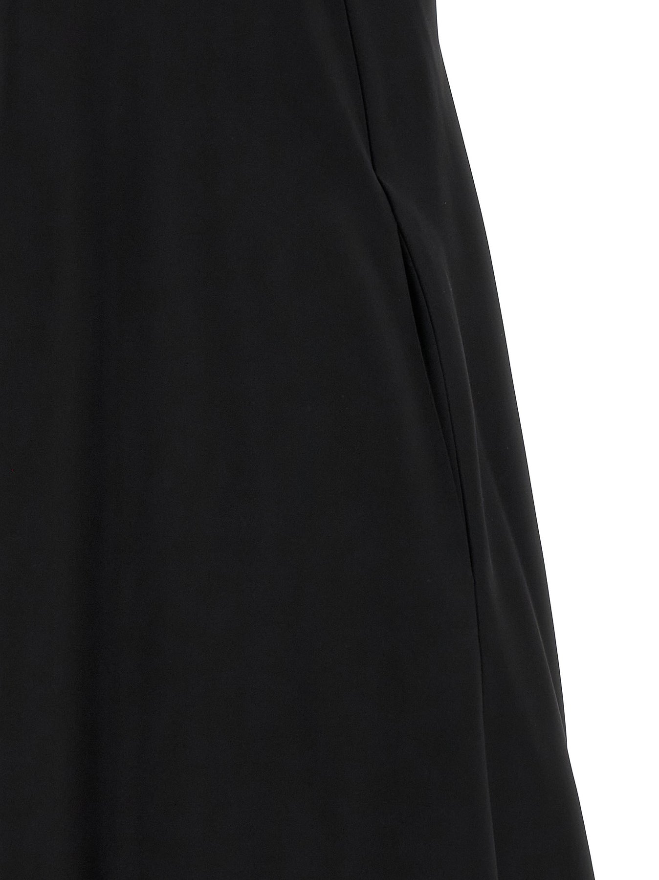 'Flamenco' dress in medium-weight stretch viscose cady, American neckline with leather lace and knot detail, sleeveless, deep round back neckline, pockets, lining.