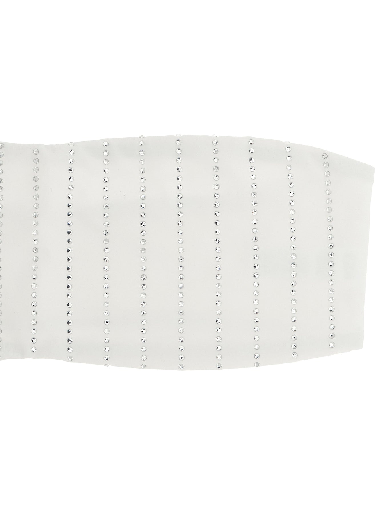 'Rebby' stretch fabric bikini top with front rhinestone appliqué, band style with side slats.