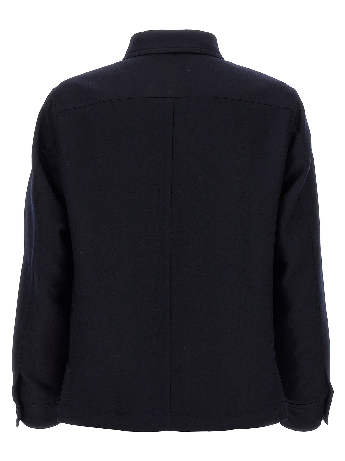 'Double Splittable Light Wool' double-sided wool and silk overshirt with front button closure, pockets, long cuffed sleeves, side slits.